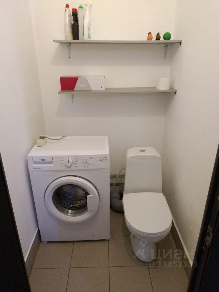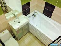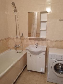 Совмещённый санузел с ванной и стиральной машиной.
