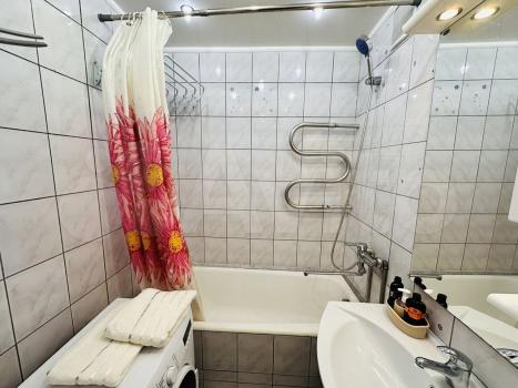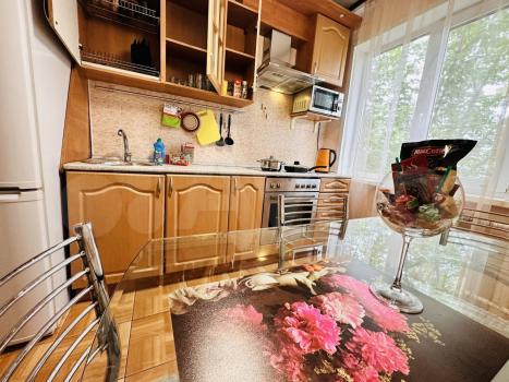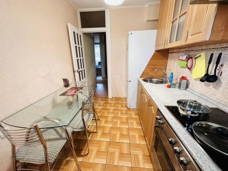 Квартира в хорошем состоянии, с техникой и всей мебелью. 45 кв.метров, 4 этаж 9 этажного дома.Окна на юг и запад, есть тамбур, застекленный балкон и отдельный гардероб. Спокойный район, во дворе обустроенная детская площадка. Большой выбор продуктовых магазинов, рядом дет. сады, школы. Всё в шаговой доступности. Транспортная развязка отличная. Парковка во дворе плотная, мест мало.