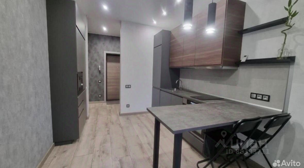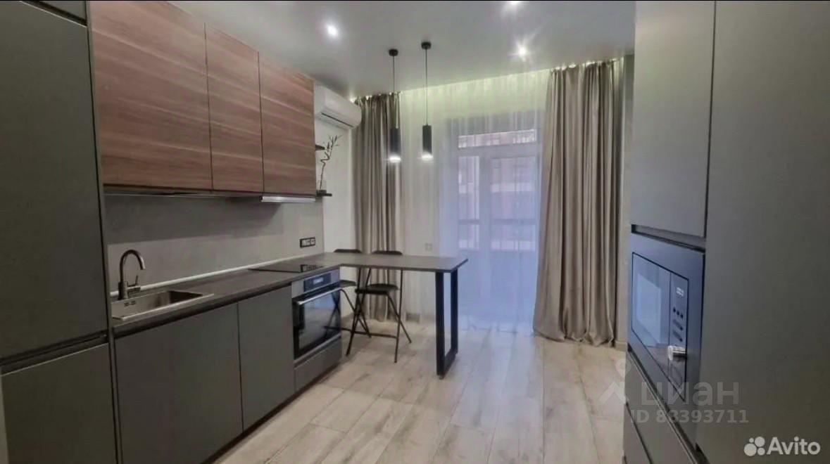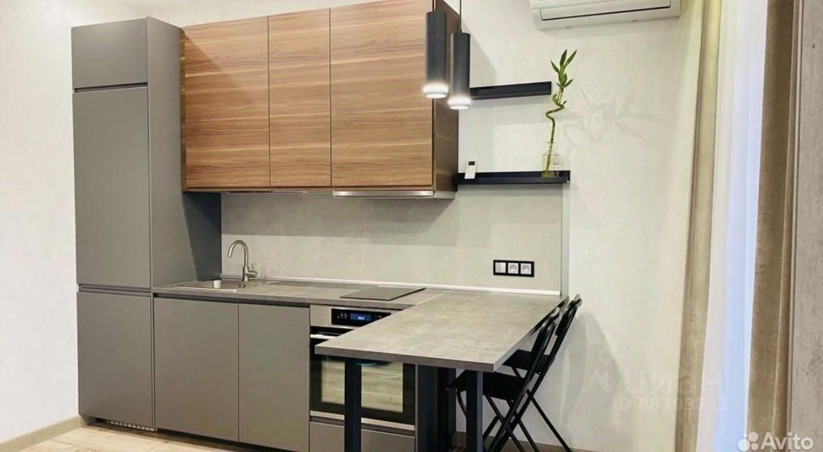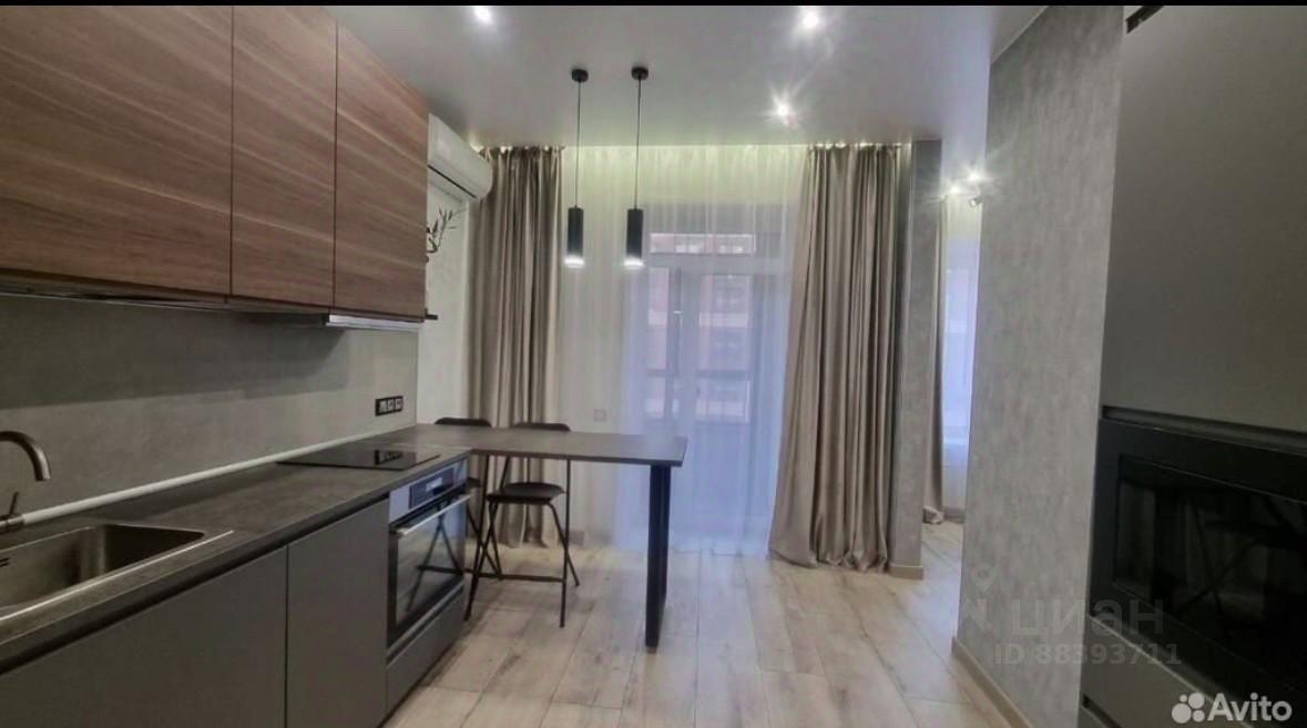 Встроенный кухонный гарнитур, варочная индукционная плита, духовой шкаф, микроволновая печь, холодильник, вытяжка, системы хранения, барная стойка со стульями, в прихожей вместительный шкаф-купе.