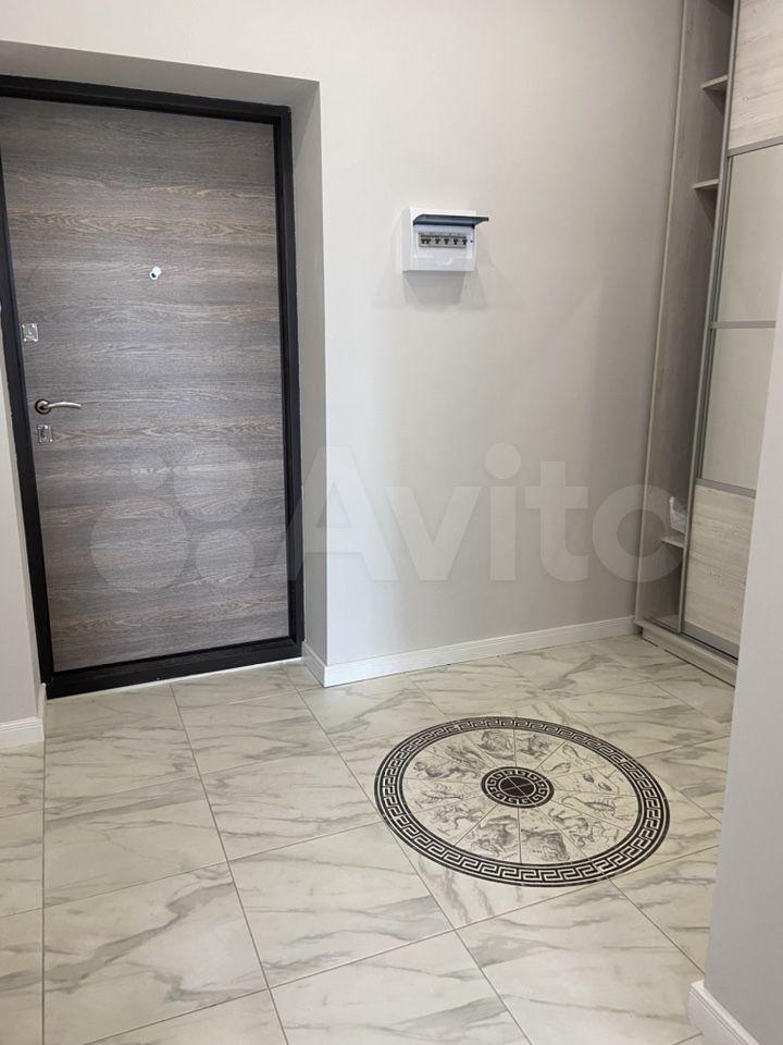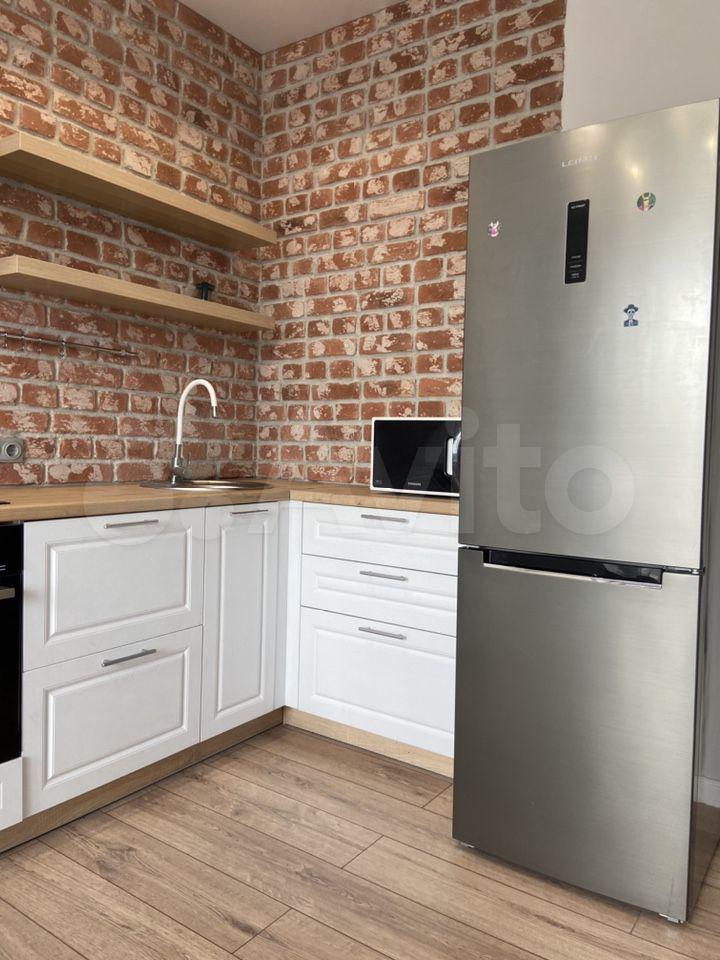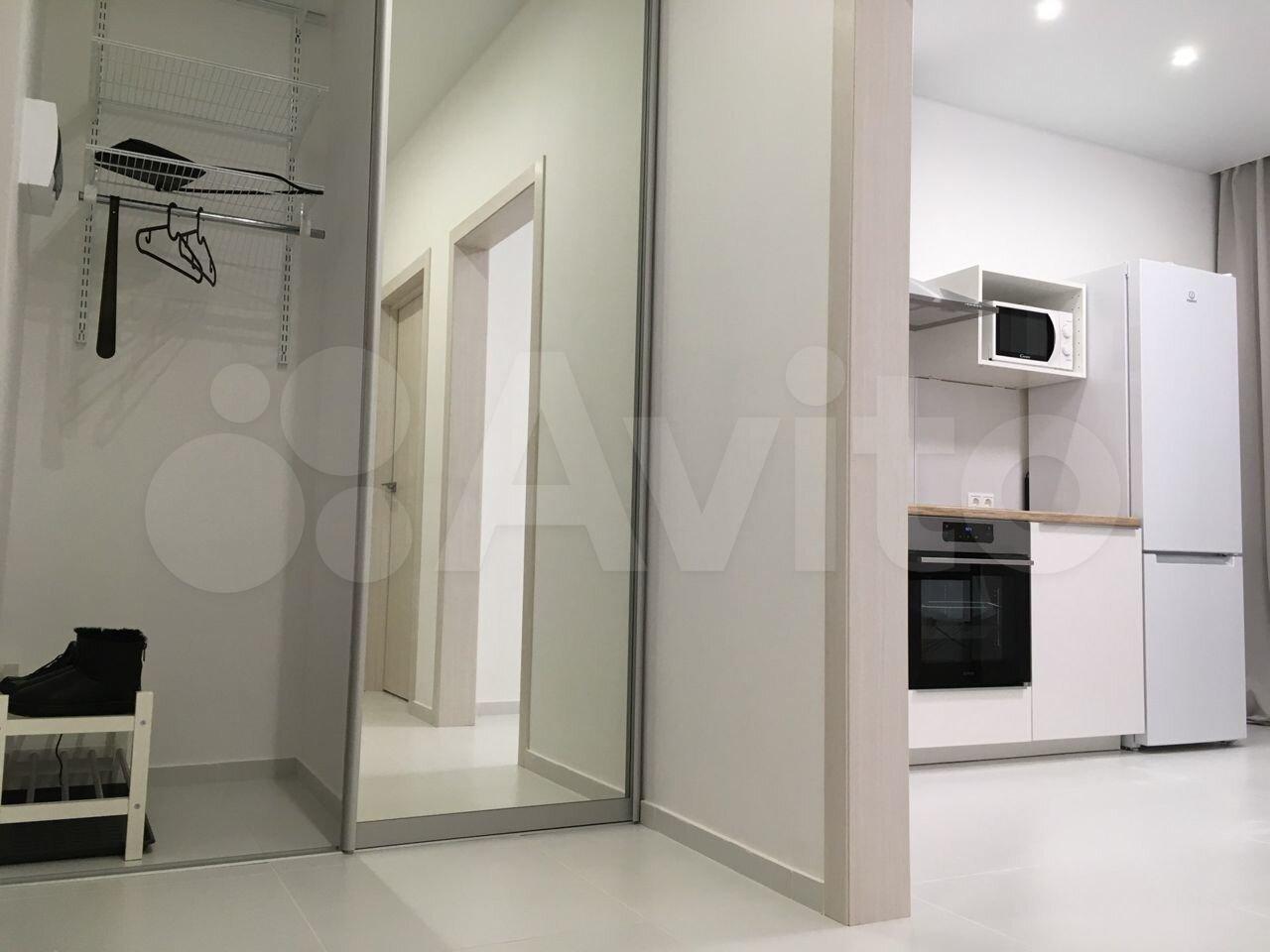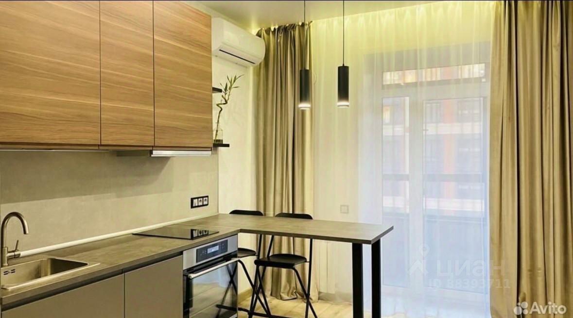 Встроенный кухонный гарнитур, варочная индукционная плита, духовой шкаф, микроволновая печь, холодильник, вытяжка, системы хранения, барная стойка со стульями, в прихожей вместительный шкаф-купе.