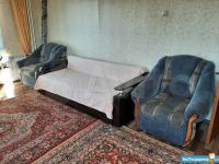 В квартире есть вся необходимая мебель - кухонный гарнитур, шкаф-купе, комод, диван, стол и стулья, шкафы и полки в ванной.