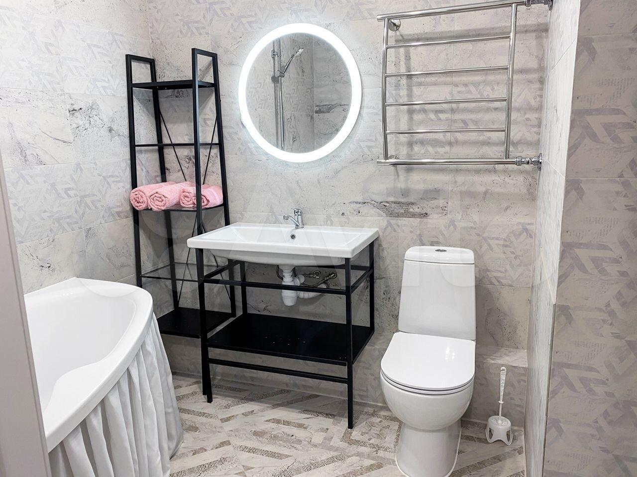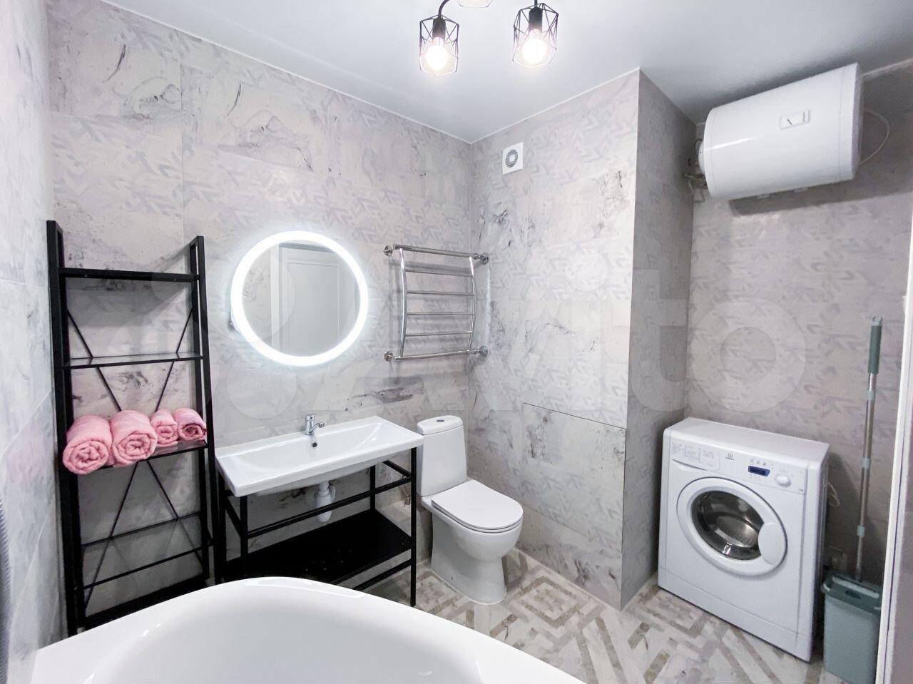 Вся мебель новая. Есть все необходимое для проживания: тёплый пол в ванной, стиральная машина, чайник, микроволновая печь, духовой шкаф, плита, посуда, интернет.