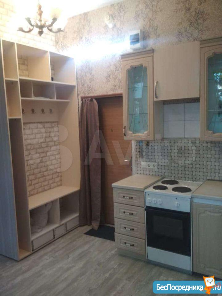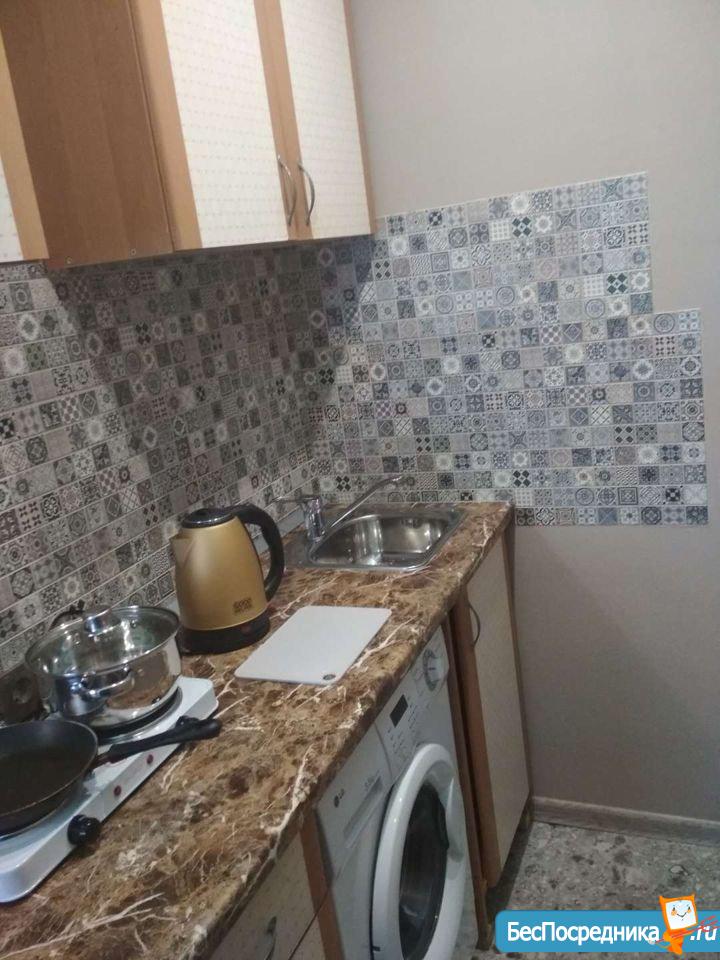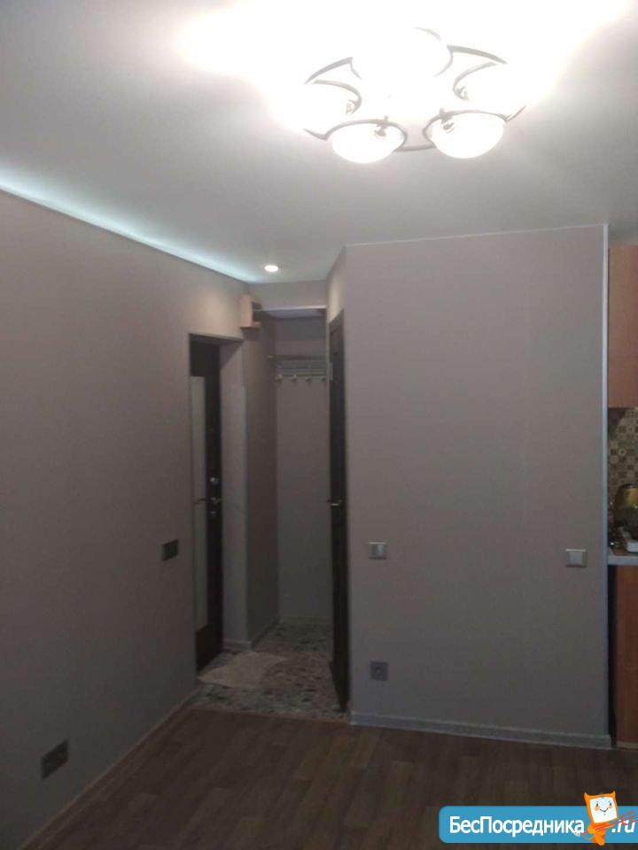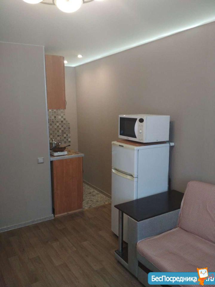 студия 18 м2. Туалет, ванная, кухня, стиральная машина, холодильник и вся обстановка- в общем заходи и живи....