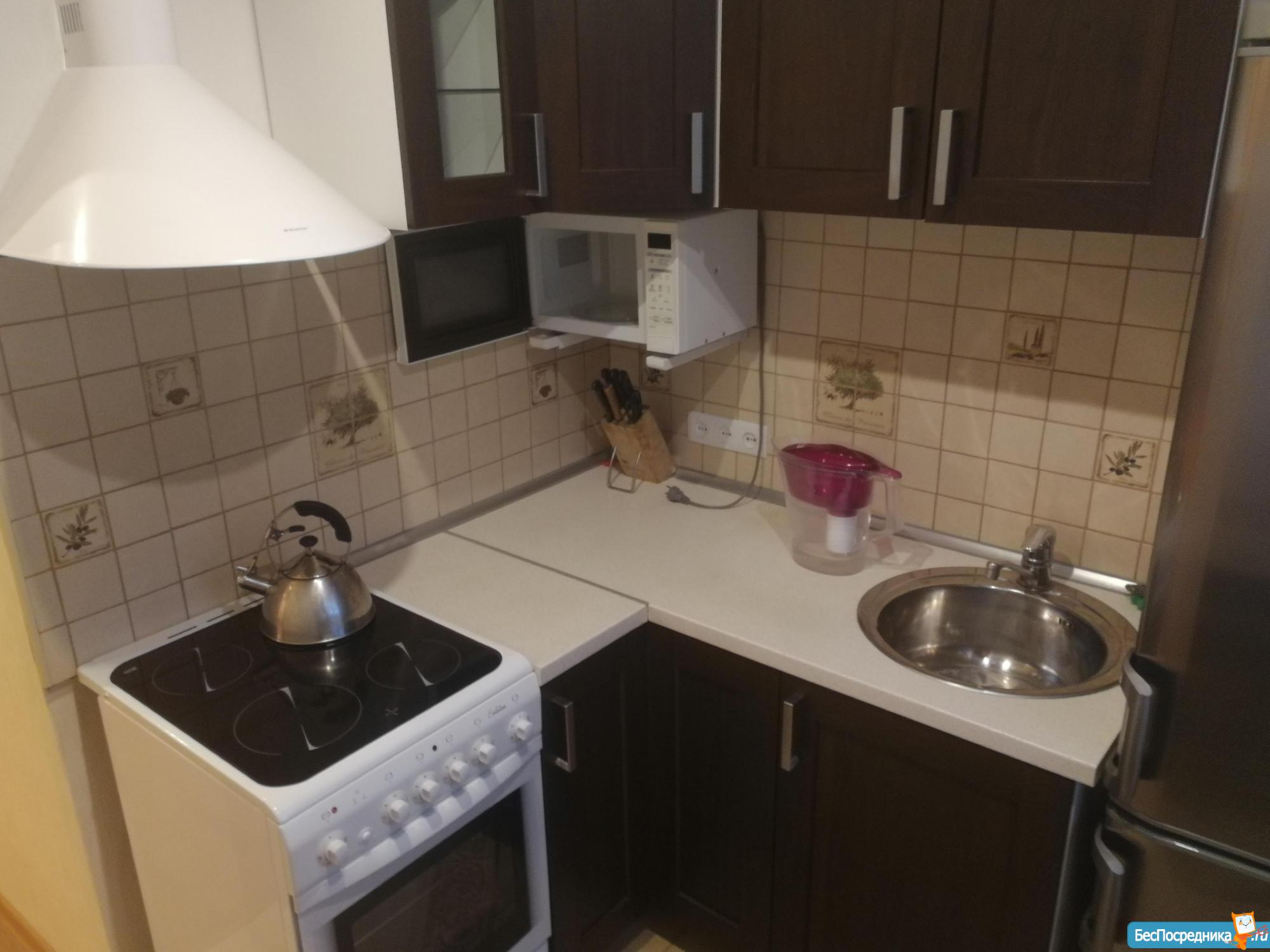В квартире есть вся необходимая мебель и техника для проживания. Из бытовой техники: холодильник, варочная панель, духовой шкаф, стиральная машинка, чайник, телевизор, микроволновка, утюг. Из мебели: 2 дивана, кухонный гарнитур, шкафы, 2 стола, тумбочки, стулья и т.д. Посуда в наличии.