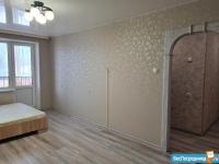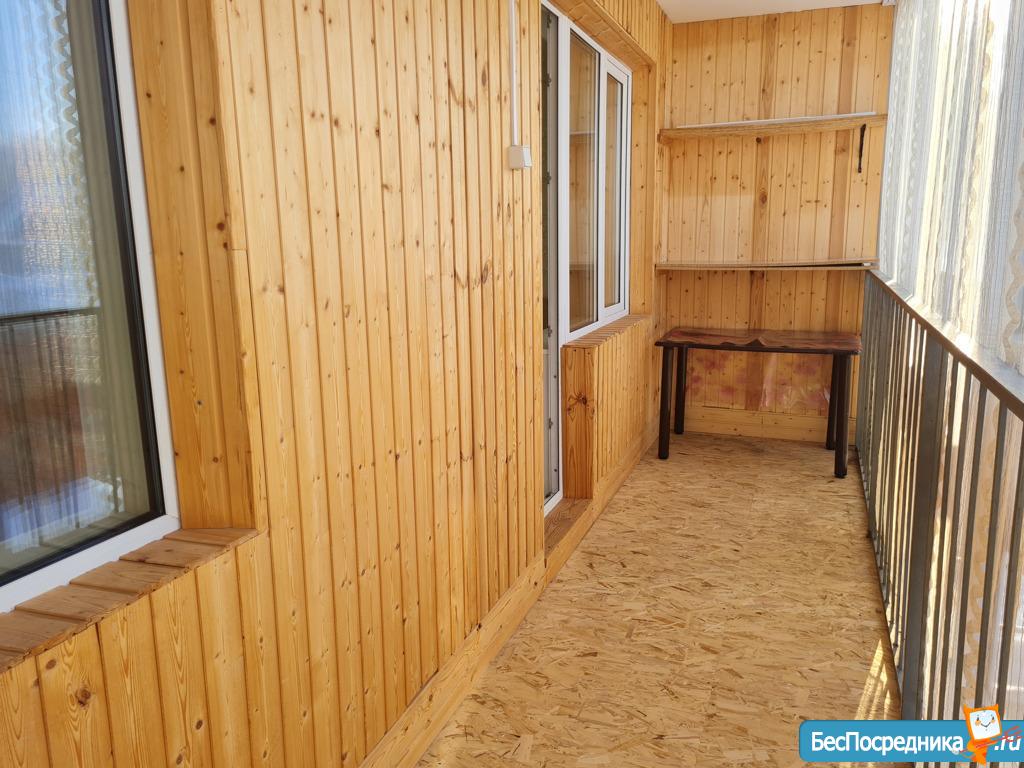 В квартире натяжные потолки, ламинат, хорошие межкомнатные двери. Лоджия площадью 9 кв.м. обшита евровагонкой.