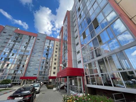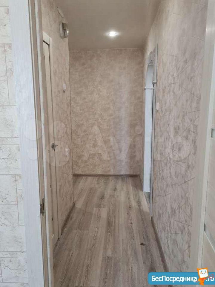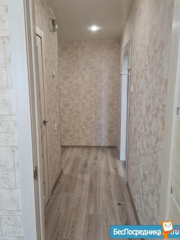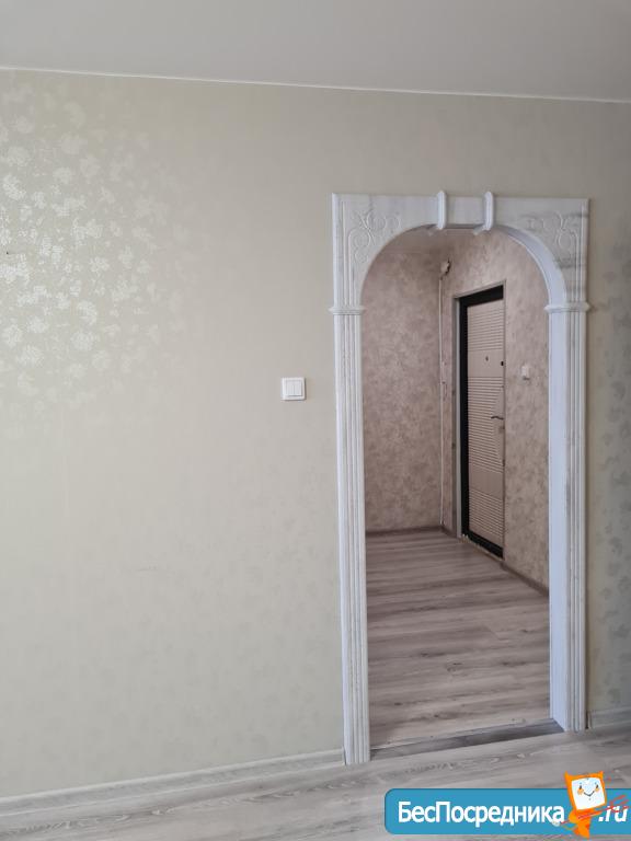 Натяжные потолки, ламинат, хорошие межкомнатные двери. Лоджия площадью 9 кв.м. обшита евровагонкой, рядом с входной дверью расположена индивидуальная кладовая комната 2,5 кв.м.