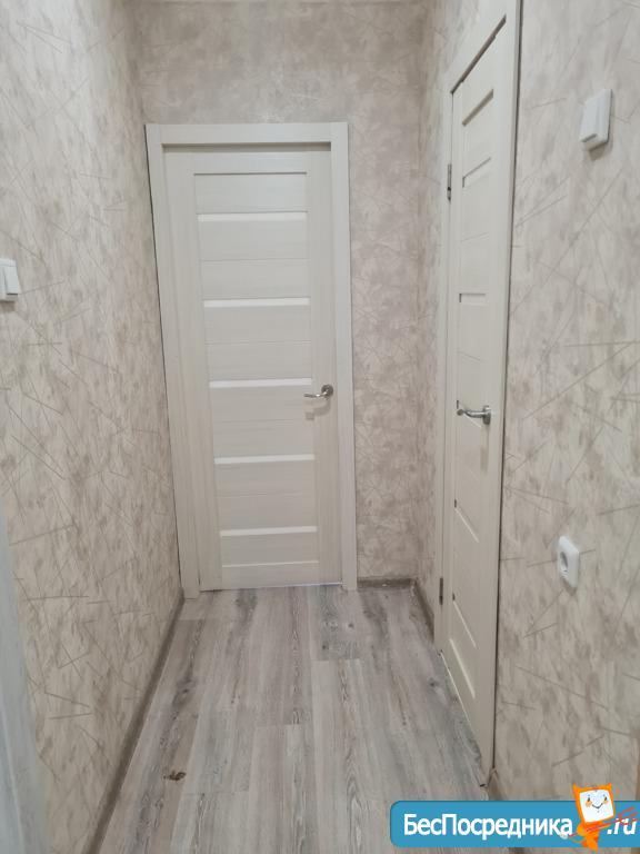 В квартире натяжные потолки, ламинат, хорошие межкомнатные двери.