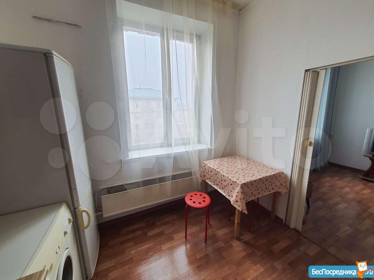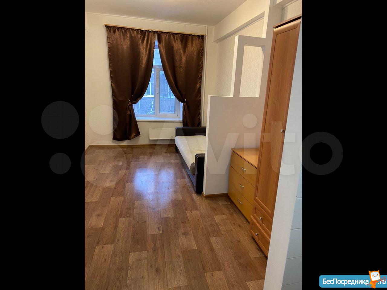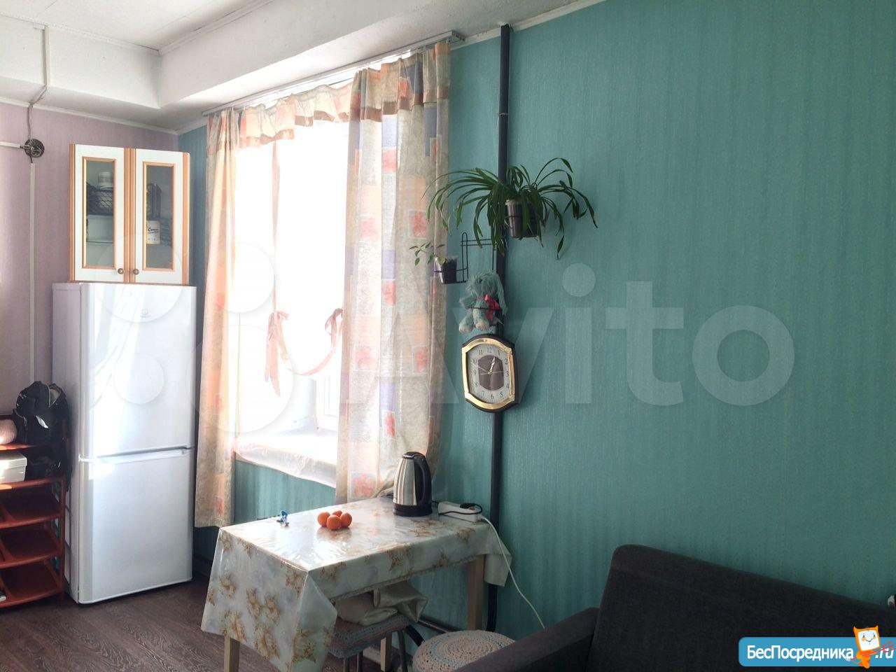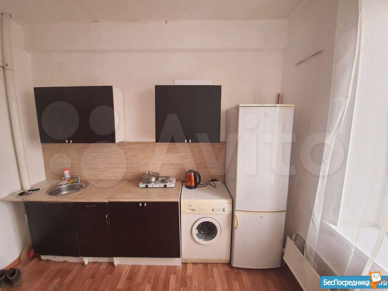 Комната в общежитии коридорного типа, потолок 3.2 метра, окно во двор, вся техника и мебель есть: большой диван, шкаф, холодильник, духовой шкаф, варочная панель, стиральная машина, душевая кабина