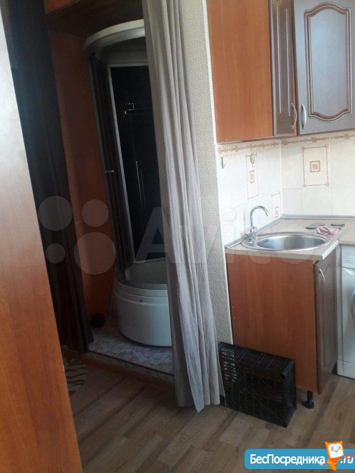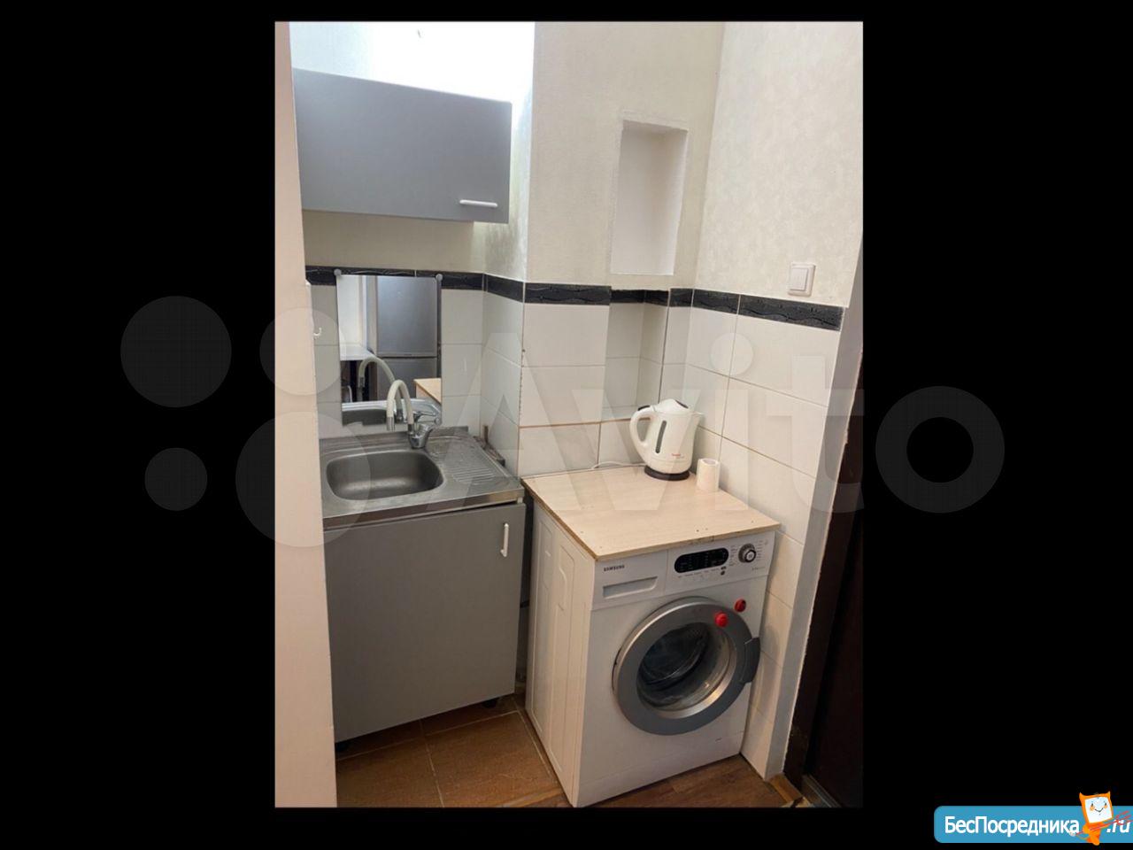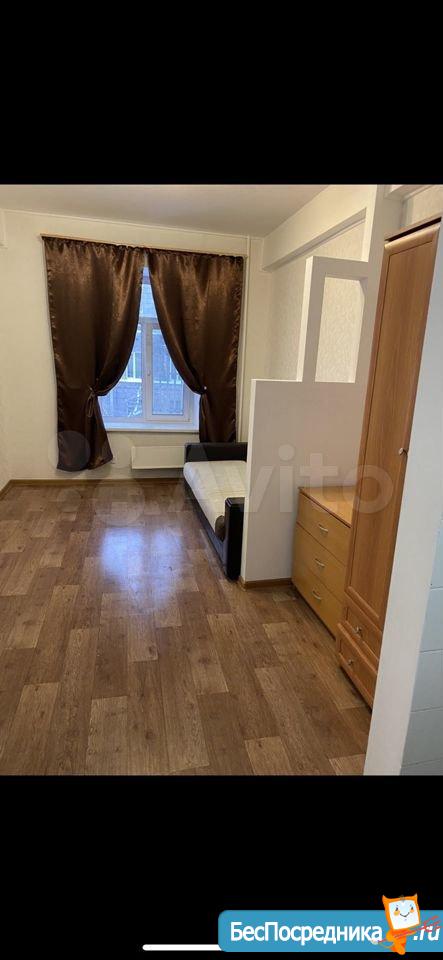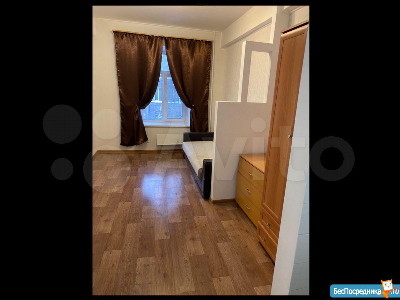 Комната в общежитии коридорного типа, потолок 3.2 метра, окно во двор, вся техника и мебель есть: большой диван, шкаф, холодильник, духовой шкаф, варочная панель, стиральная машина, душевая кабина