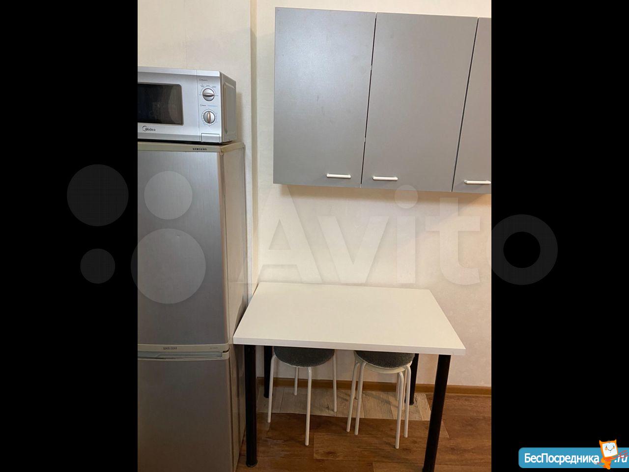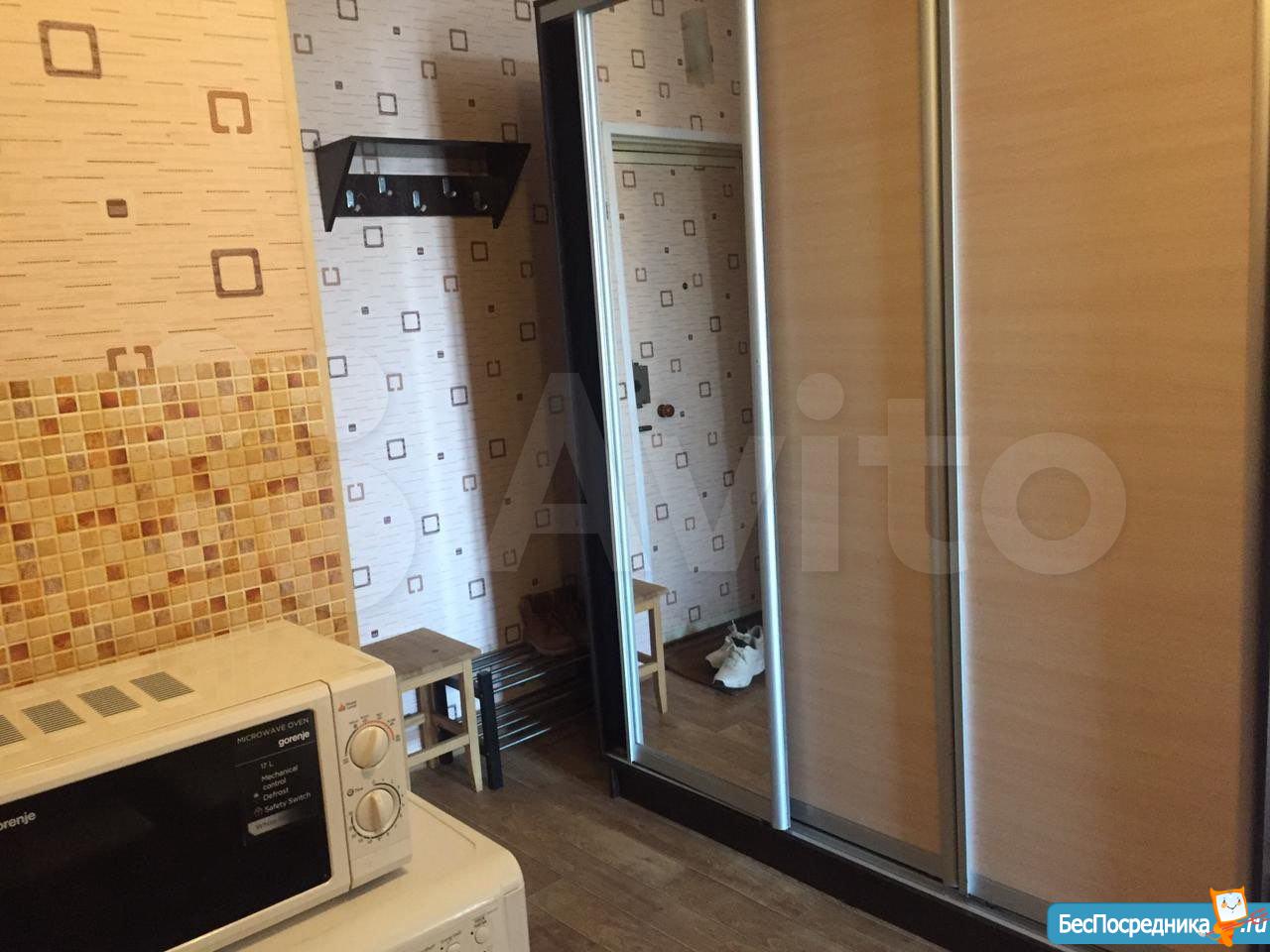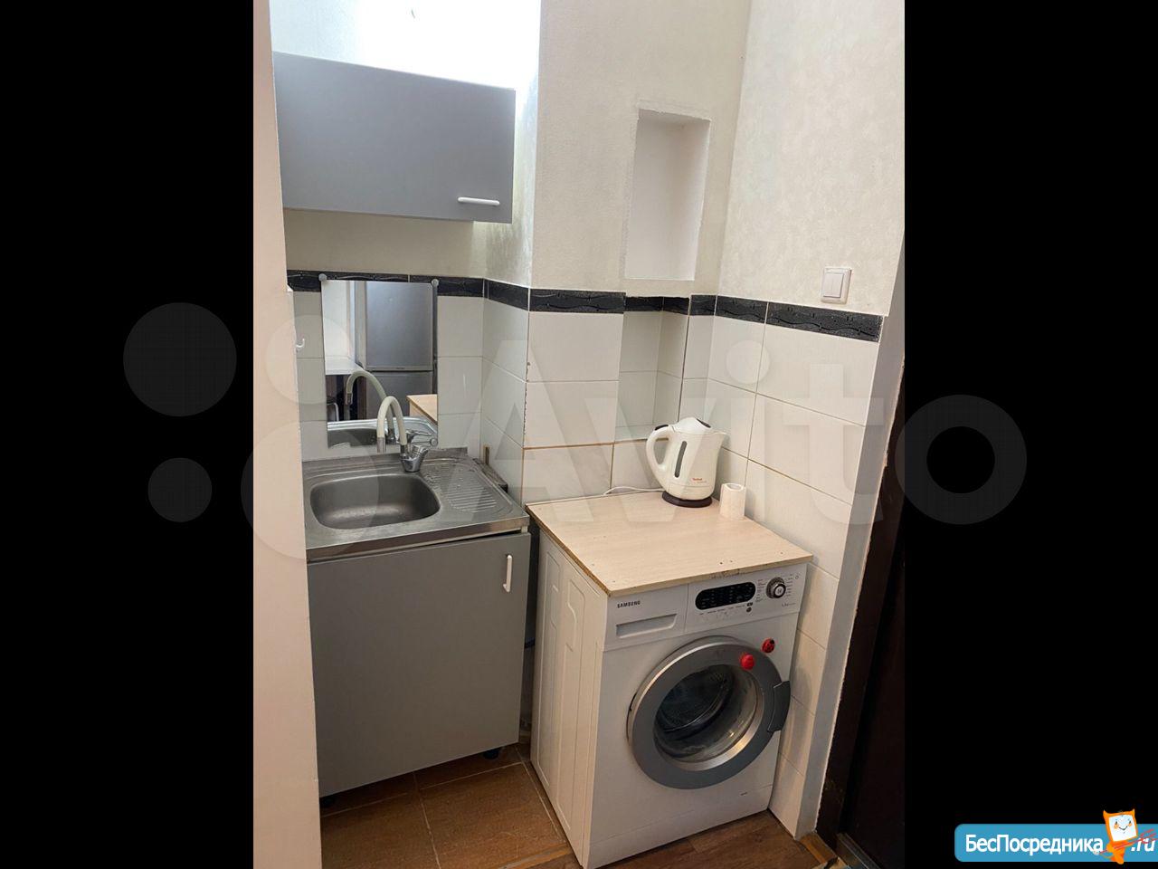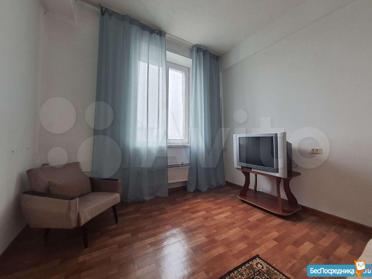 Комната в общежитии коридорного типа, потолок 3.2 метра, окно во двор, вся техника и мебель есть: большой диван, шкаф, холодильник, духовой шкаф, варочная панель, стиральная машина, душевая кабина
