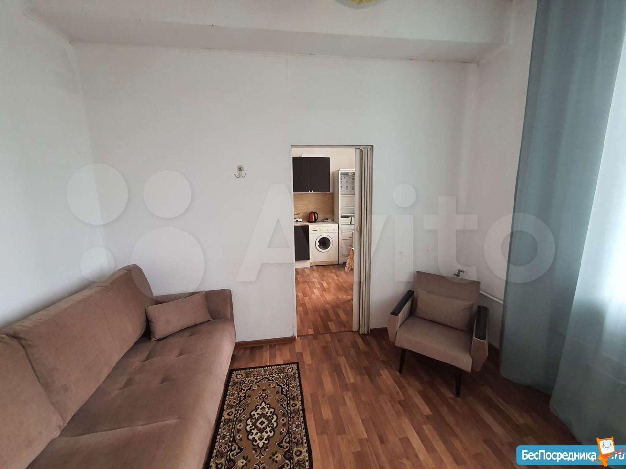 Светлая комната, окно во двор, потолок 3,2. В комнате есть все необходимое. Холодильник, стиральная машина, большой шкаф, плита, духовой шкаф, душевая кабина. Рядом магазины, детские сады, школа