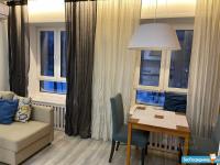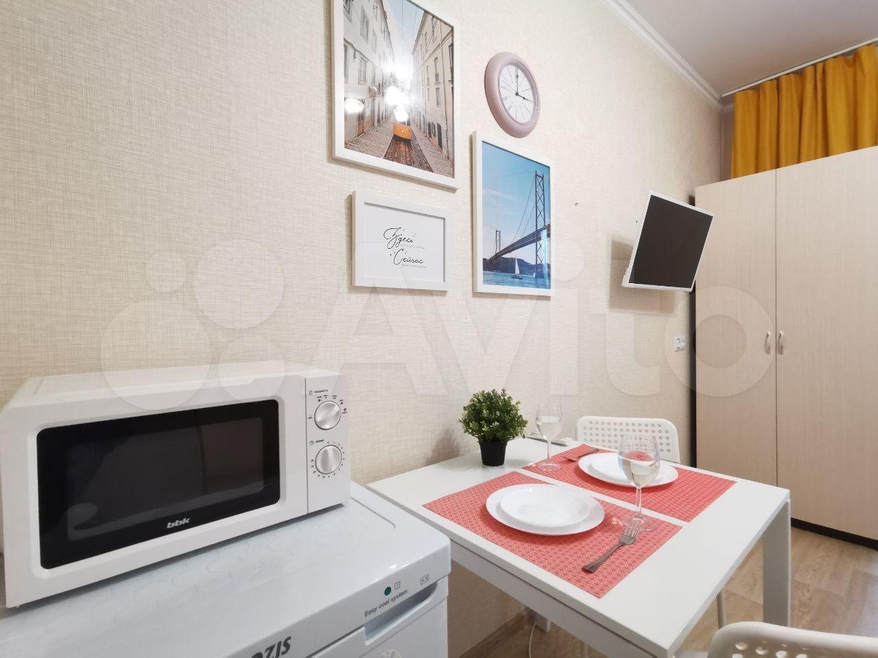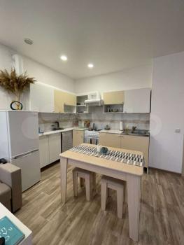 Полнoстью мебелизировaнную мебелью, посудой для приготовления пищи, техникой (кухня, кровать с ортопедическим матрацем, стол/стулья), шкаф под одежду, шторы, с техникой (LСD телевизор, плита, стир. машина, холодильник, чайник, СВЧ печь).