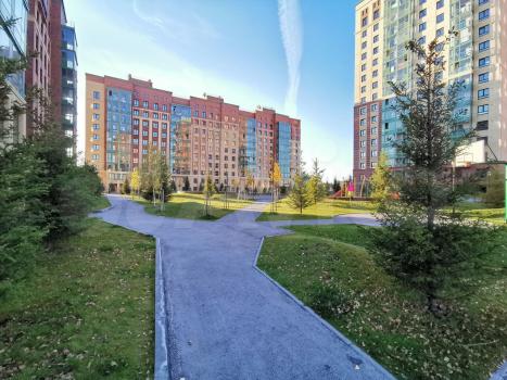 К комплексу есть подъезды с разных сторон, довольно удобная транспортная развязка, до метро 8 минут ходьбы через парк. Садики, школы, ТЦ, продуктовые магазины, в принципе все основное есть по близости.