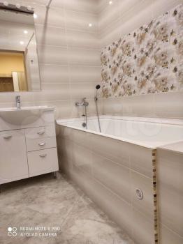 Квартира с дизайнерским ремонтом, что придаёт ей стиль и уют. Просторная кухня площадью 22 кв. м оснащена всей необходимой техникой: холодильником, посудомоечной машиной и стиральной машиной. В комнатах есть мебель, а в одной из них установлен кондиционер. Ванная комната оборудована как ванной, так и душевой кабиной, поэтому можно выбрать, что вам больше по душе. Окна выходят во двор, поэтому в квартире всегда тихо и спокойно.