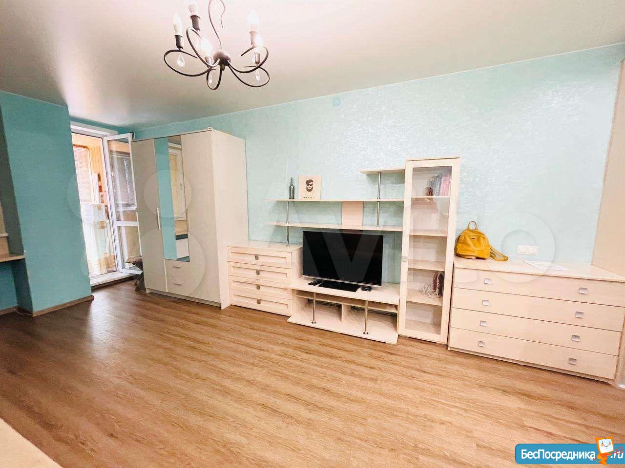Сдам квартиру студию на длительный срок. В квартире выполнен хороший ремонт, есть все необходимое для проживания. Удобная кухня с встраиваемой техникой. Балкон застеклен и утеплен, тёплый пол, кондиционер.