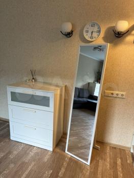 2-й этаж 5-и этажного кирпичного дома. В квартире есть все необходимое для проживания: 2 кровати, диван, шкаф, 2 стола и т.д., холодильник, электропечь, стиральная машина, микроволновка, посуда; интернет кабель.