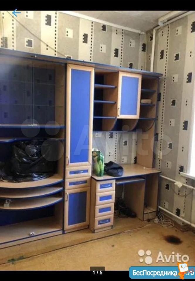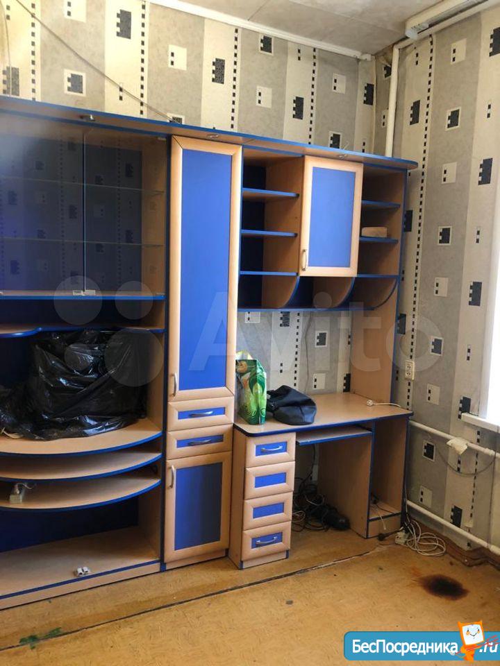 Комната в общежитии корридорного типа с мебелью :шкаф ,телвизор,диван ,холодильник ,плита ,посуда,стиральная машинка,кухонный ганритур,все что на фото.Вода в комнате. Туалет ,общая кухня на этаже.