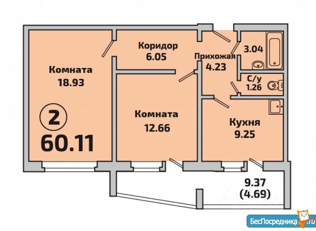 отличное состояние, санузел совмещённый, есть балкон/лоджия, мебели нет, холодильника нет.