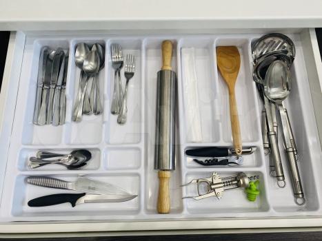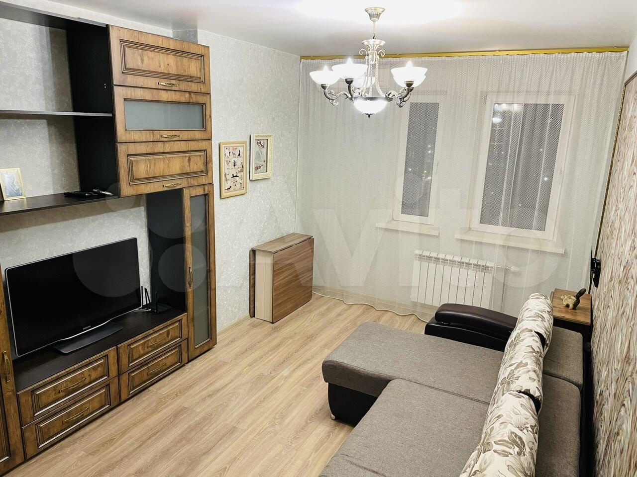 В квартире есть всё для проживания: просторный диван , большой шкаф, кухонный гарнитур, плита, микроволновая печь, холодильник, чайник, стиральная машина, телевизор, утюг