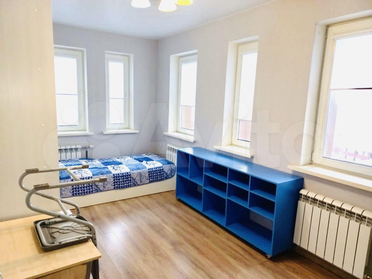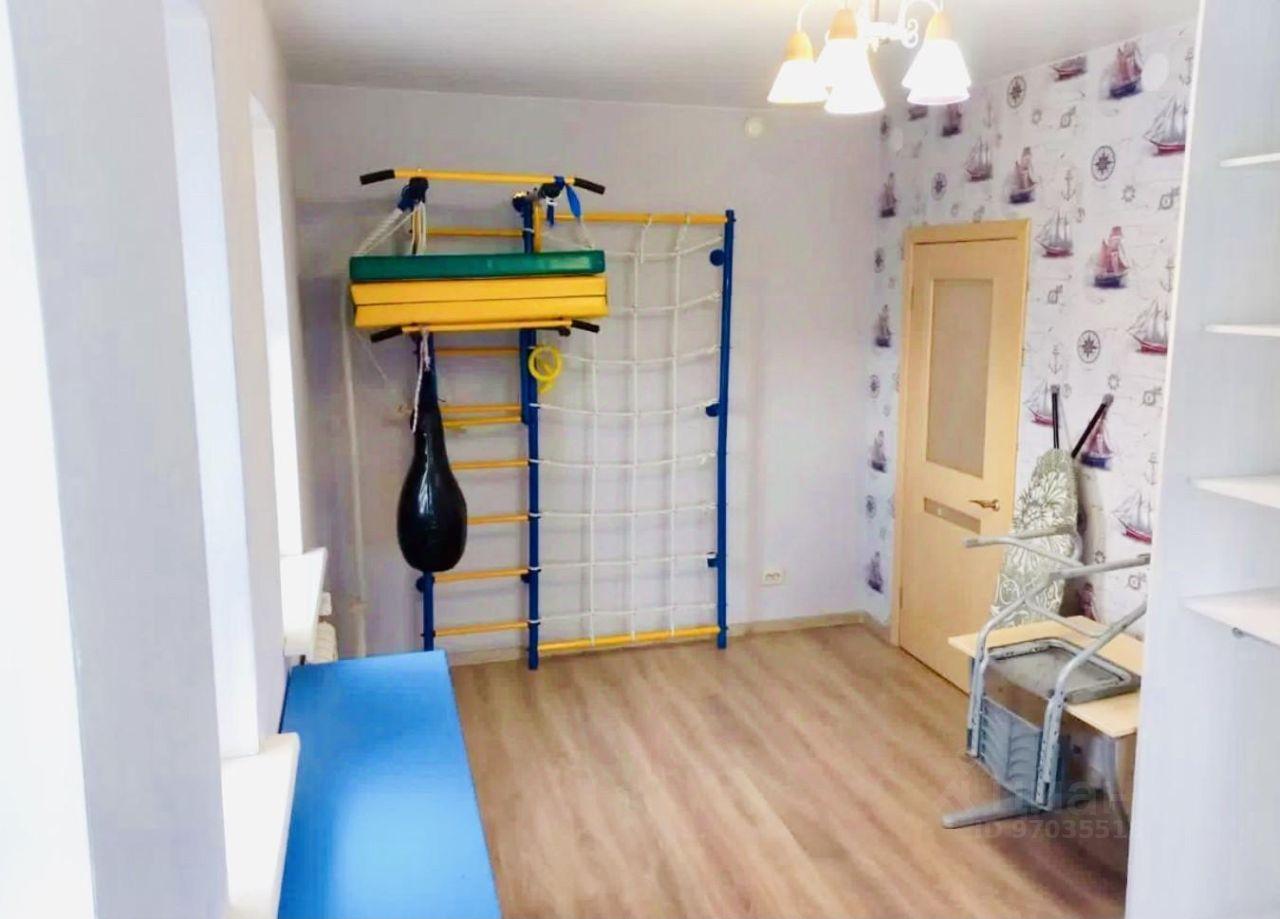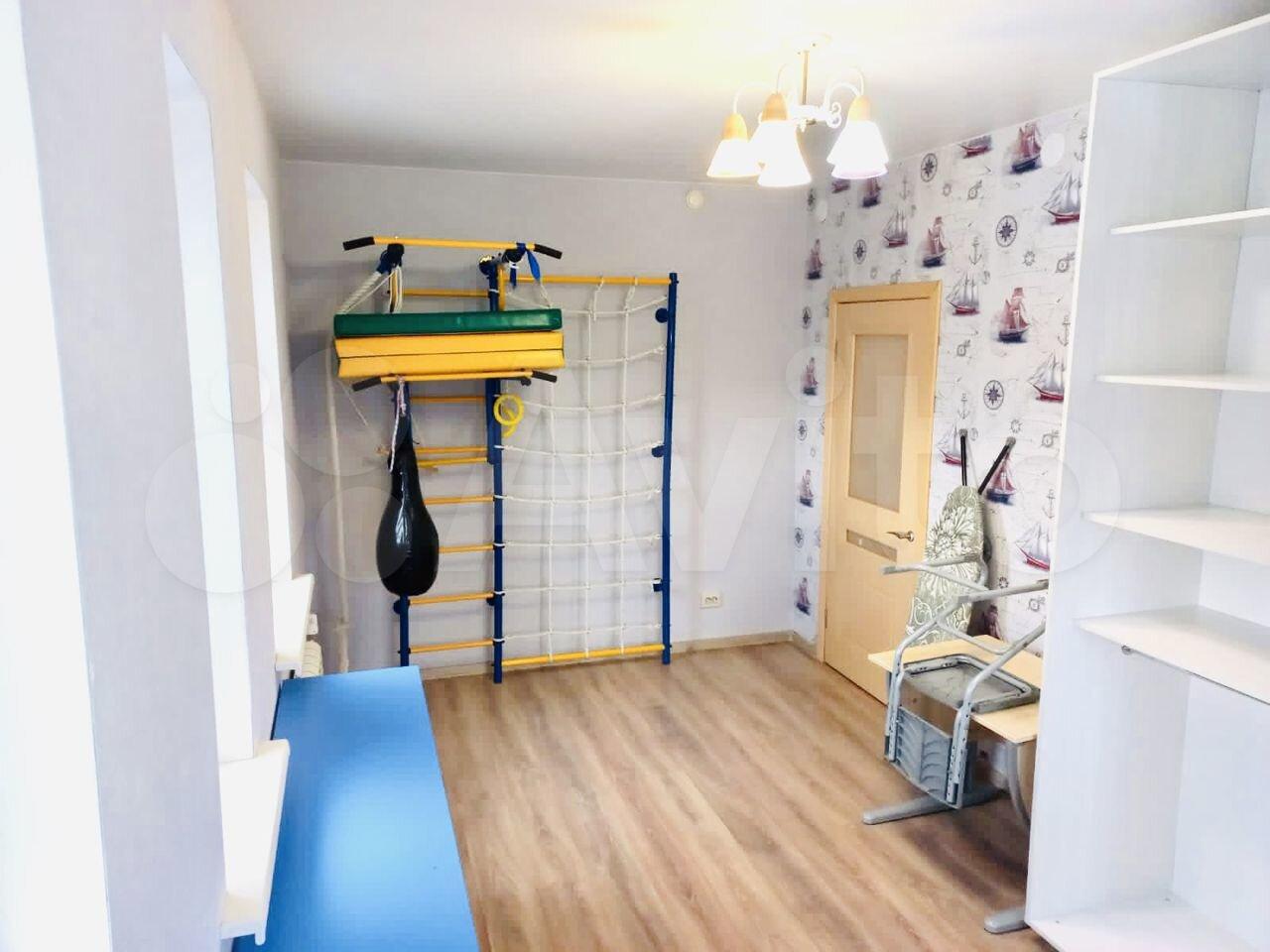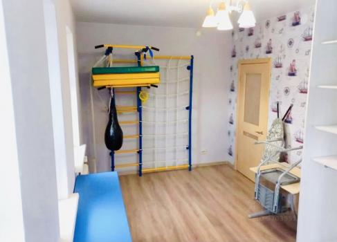 На фото 7 и 8 представлена детская. В детской расположена односпальная кровать 90х190, большой вместительный шкаф для одежды, полки для книг, шкаф для игрушек, рабочий стол и стул, шведская стенка с турником и грушей.