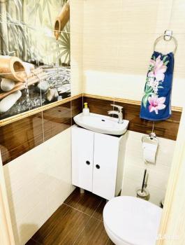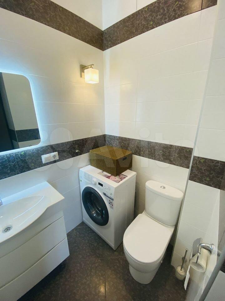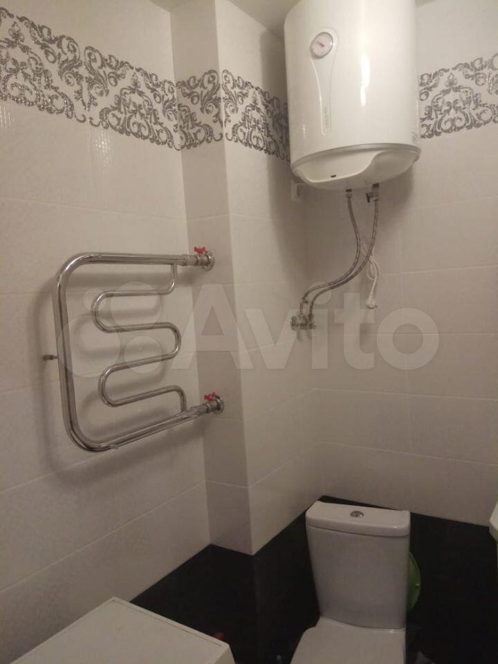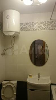 На фото 14 и 15 представлены туалет и ванная комната. В ванной установлена стиральная машинка, в туалете - водонагреватель.