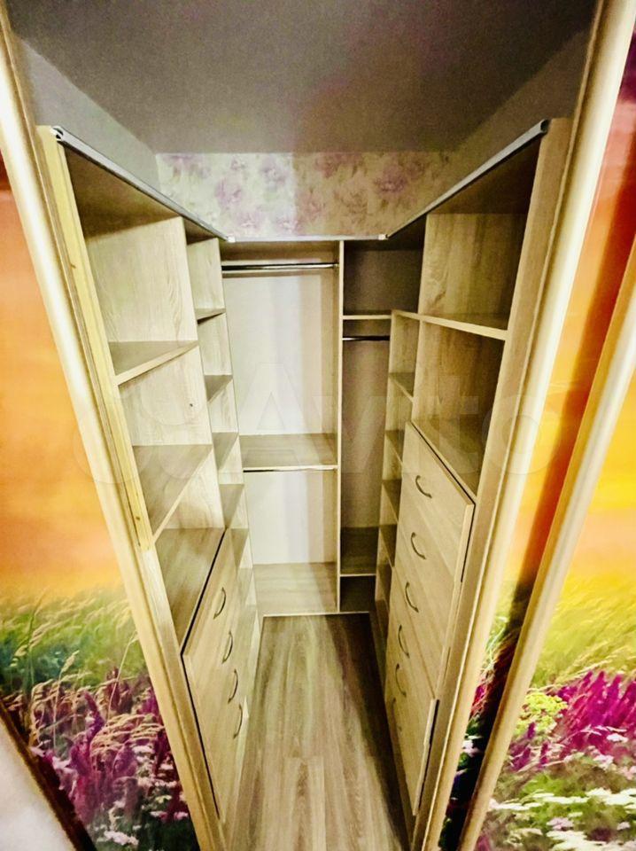 На фото 3 и 4 представлена спальня. В спальне расположена двухместная кровать, две тумбы, вместительная гардеробная (фото 5 и 6). Из спальни есть выход на балкон. На балконе есть шкаф. Вид с балкона в сторону реки.