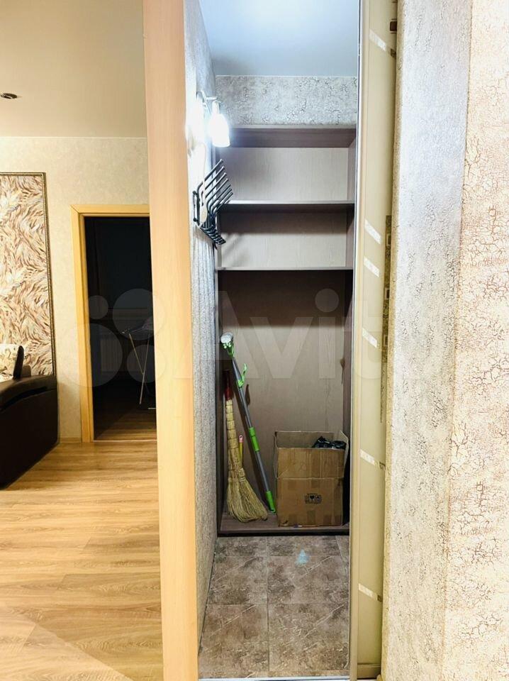 На фото 11 представлен коридор. В коридоре на входе большой вместительный шкаф-купе. Над входной дверью турник. Из коридора есть дверь в кладовку (фото 12 и 13).