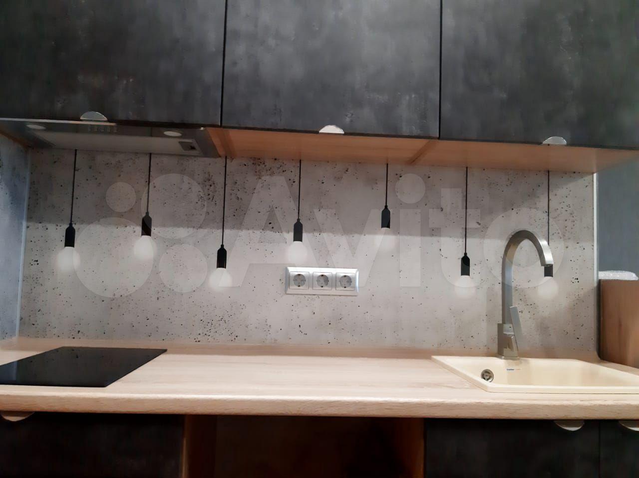 Установлен кухонный гарнитур с барной стойкой, множество мест для хранения кухонных принадлежностей. Варочная панель, холодильник, микроволновая печь, вытяжка, электрический чайник, возможность установки встроенного духового шкафа и встроенной посудомойки;