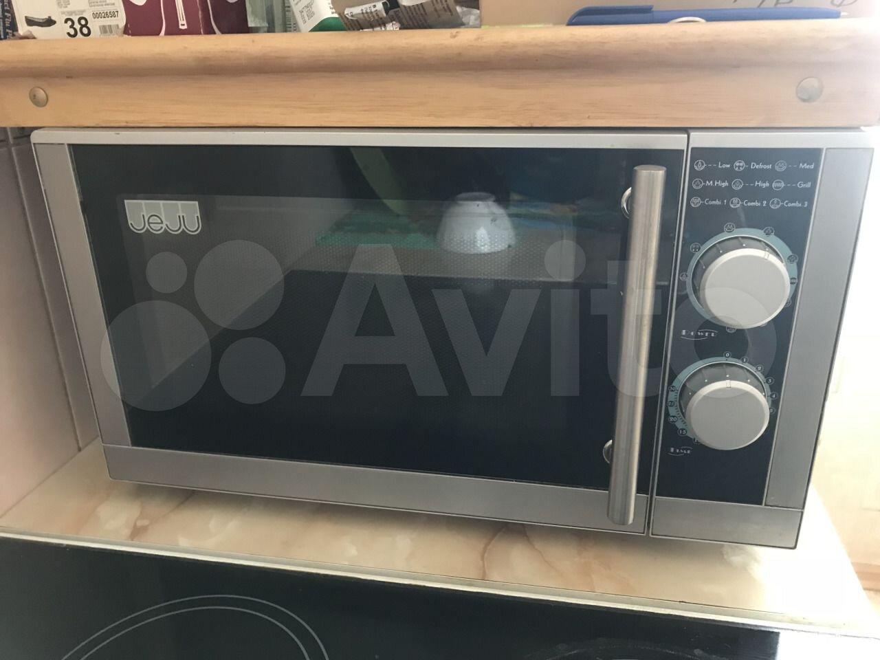 холодильник, плита, микроволновка, стиральная машина, телевизор.