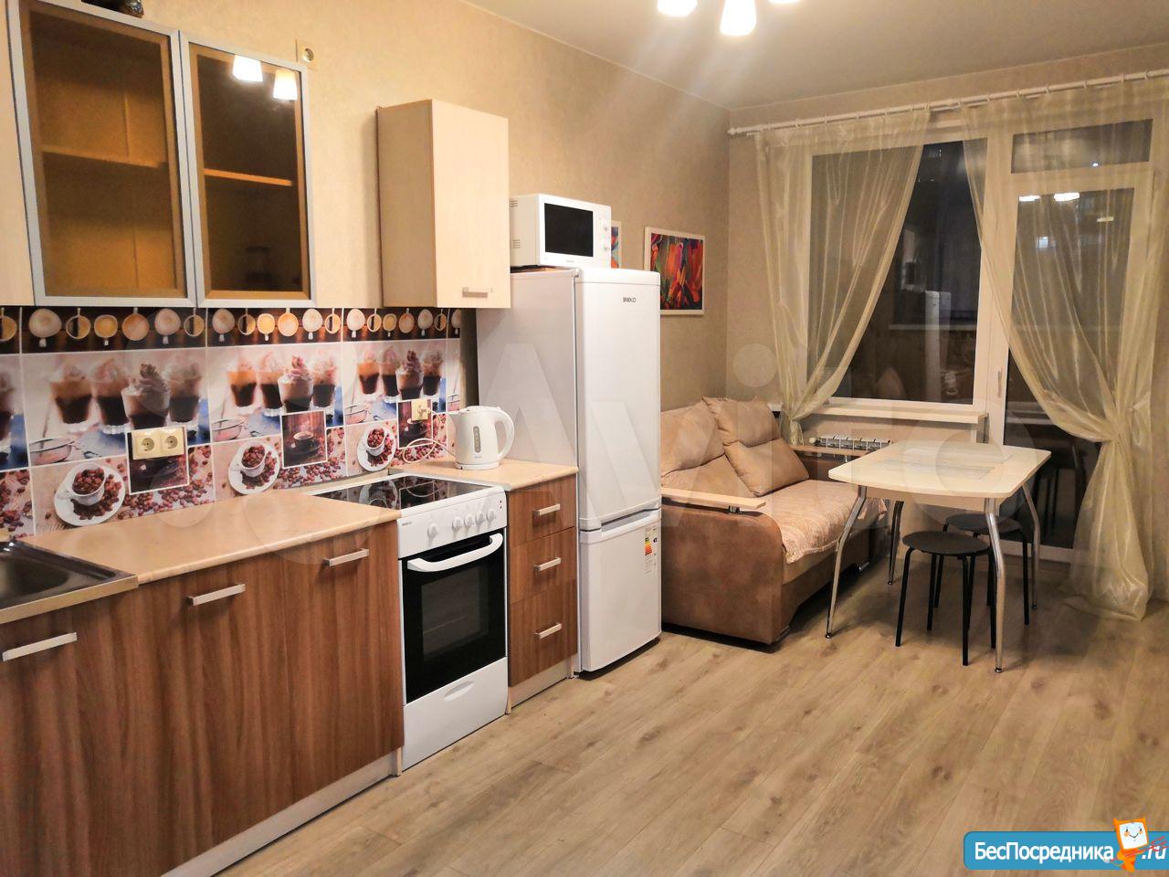 Уютная современная студия в новом доме с ремонтом и мебелью. Дополнительно оплачивается компенсация ком. услуг по счётчикам.