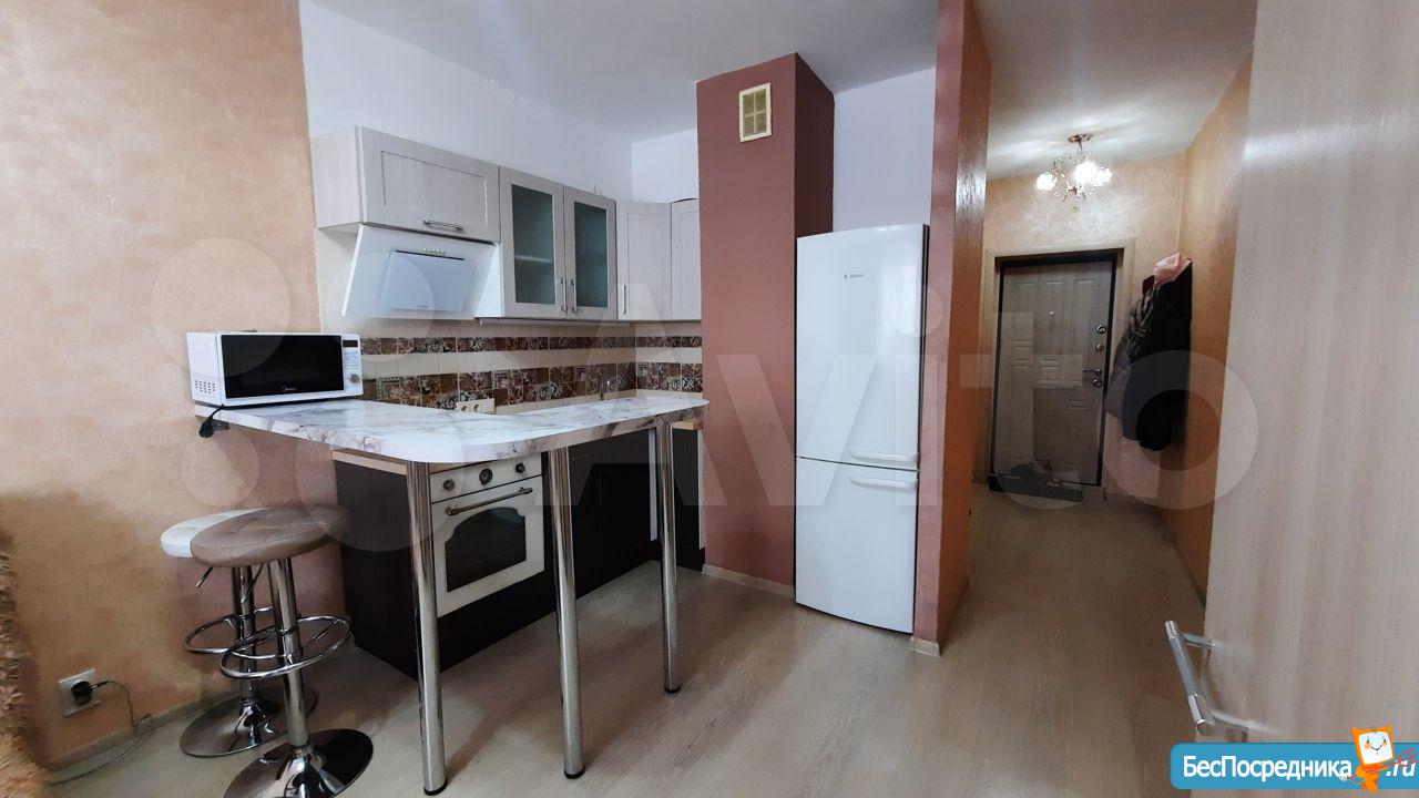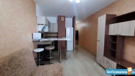 Сдается квартира-студия с конца декабря. В хорошем состоянии. Есть двуспальный диван, стол, кухонный гарнитур, шкаф, холодильник, стиральная машинка, интернет. Аренда от собственника. Возможен онлайн-показ.