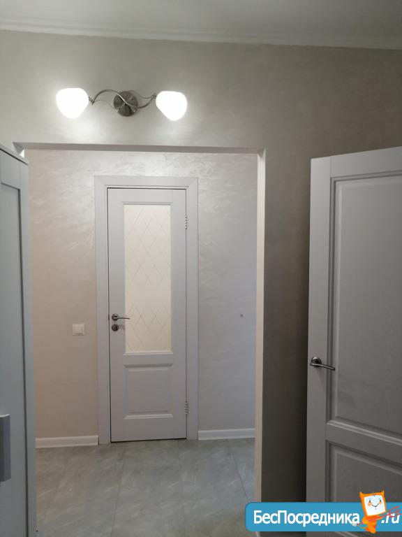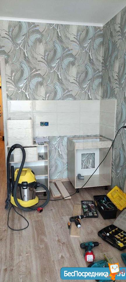 В квартире ни кто не жил. Санузел раздельный, на стенах кафель. Во всей квартире ламинат. Одинаковые межкомнатные двери. На данный момент собираем и устанавливаем кухонный гарнитур, шкаф в прихожей. Кухня большая, хватит места поставить диван. На днях привезём диван. Стиральная машинка автомат. Есть стол, стулья, стеклокерамическая варочная поверхность. На окнах будет тюль и портьеры.