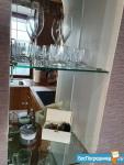 Квартира оборудована всем необходимым: просторный раскладной диван, телевизор, кондиционер, угловой шкаф, журнальный столик на колесиках. В куxне eсть все необходимое для приготовления пищи- индукционная плита, микроволновая печь, холодильник, наборы посуды. В ванной комнате- средства гигиены, утюг, гладильная доска, фен, комплект полотенец, стиральный порошок. На лоджии диванчик и столик с шикарным видом на город с 15 этажа. Просторно, светло, свежо, чисто.