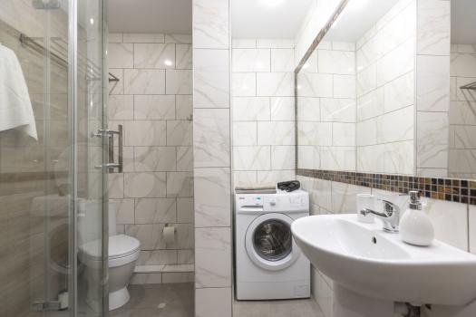 Есть всё необходимое для комфортной жизни: диван, холодильник, плита, стабильный WI-FI, стиральная машинка и т.д.