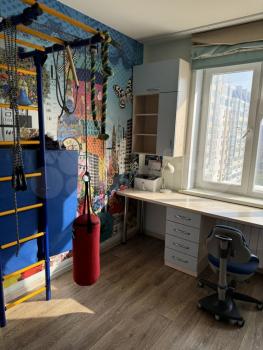 В СПАЛЬНЕ огромная двуспальная кровать 180 см с ортопедическим матрасом,комод +гардеробная. В другой спальне, письменный стол-стеллаж икея, кровать двуспальная 140 см.гардеробная ,кресло. Во второй детской ТВ + диван, стол и стеллаж, шкаф для одежды икея и кровать с ортопедическим матрасом 140см.