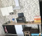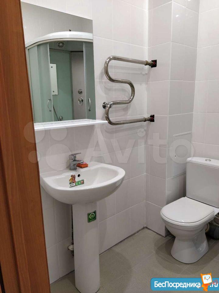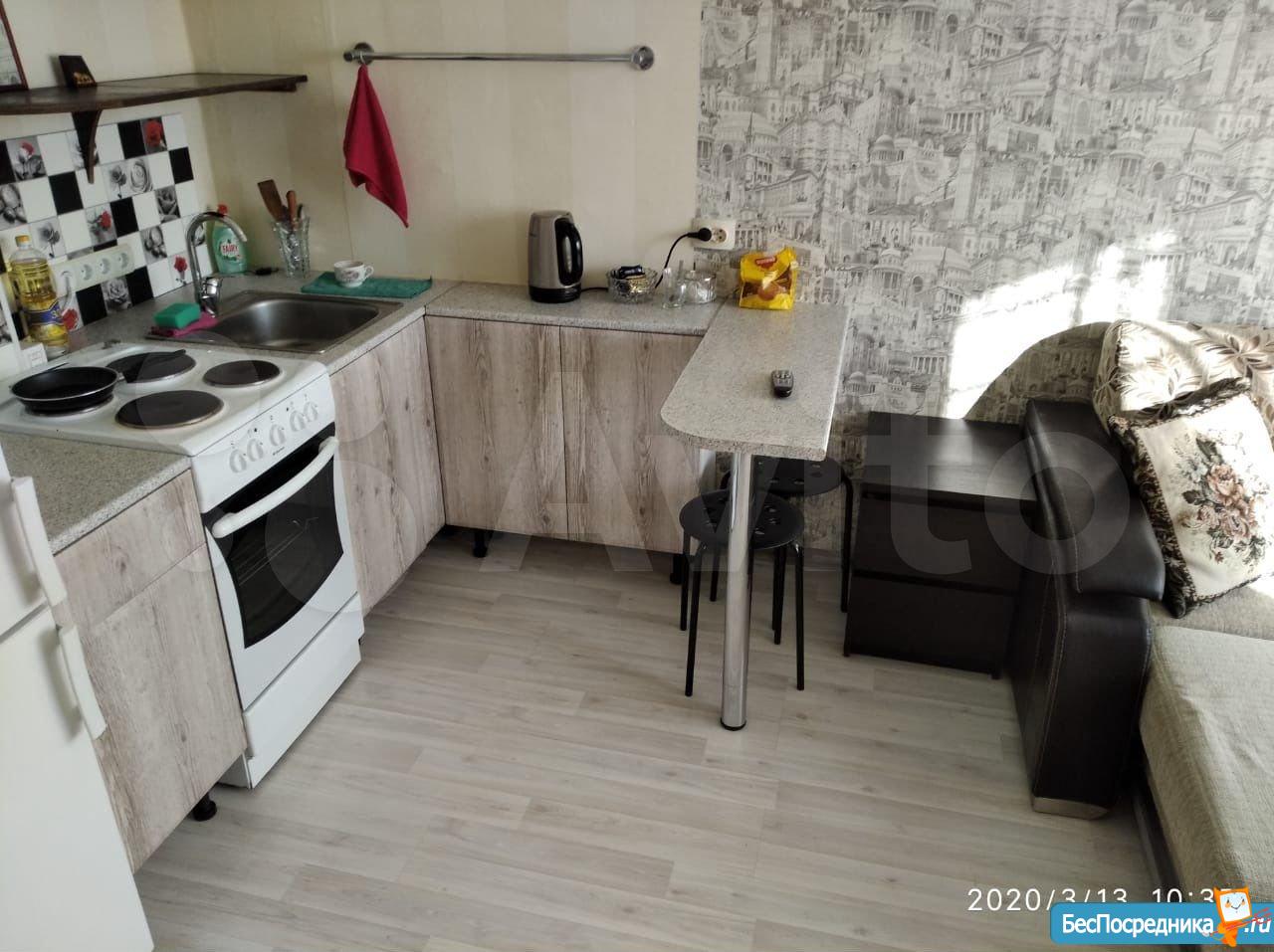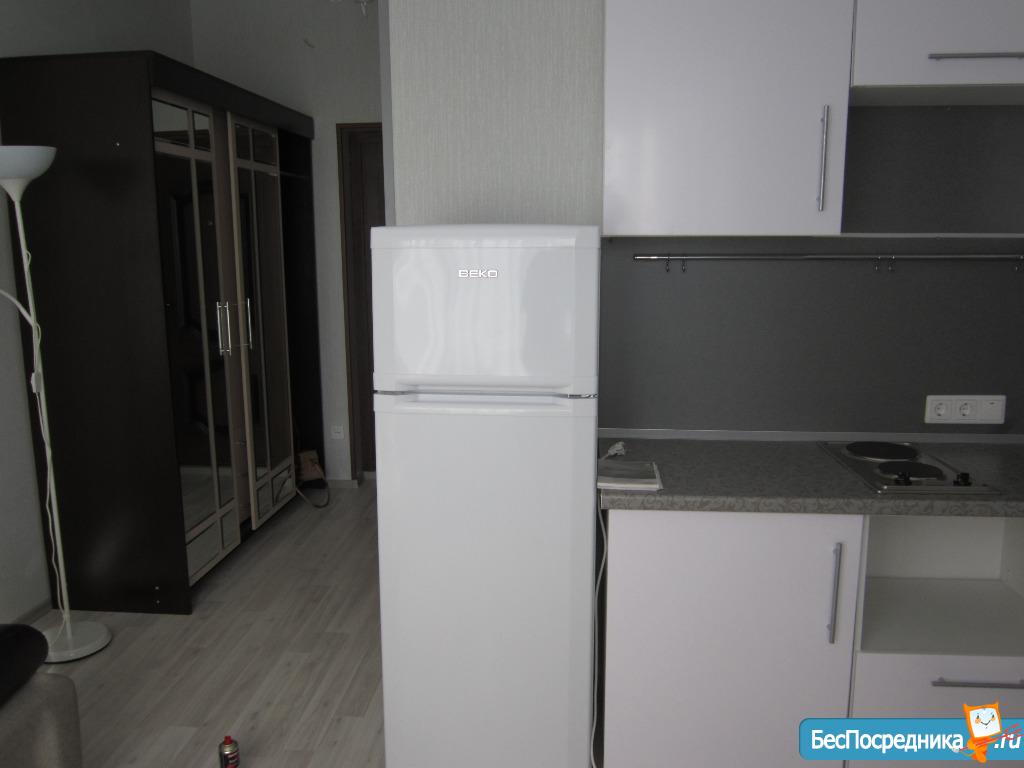 Сдам студию. Натяжной потолок, линолеум, двухметровый холодильник, кух.гарнитур, диван, эл.плитка, душевая кабина.
