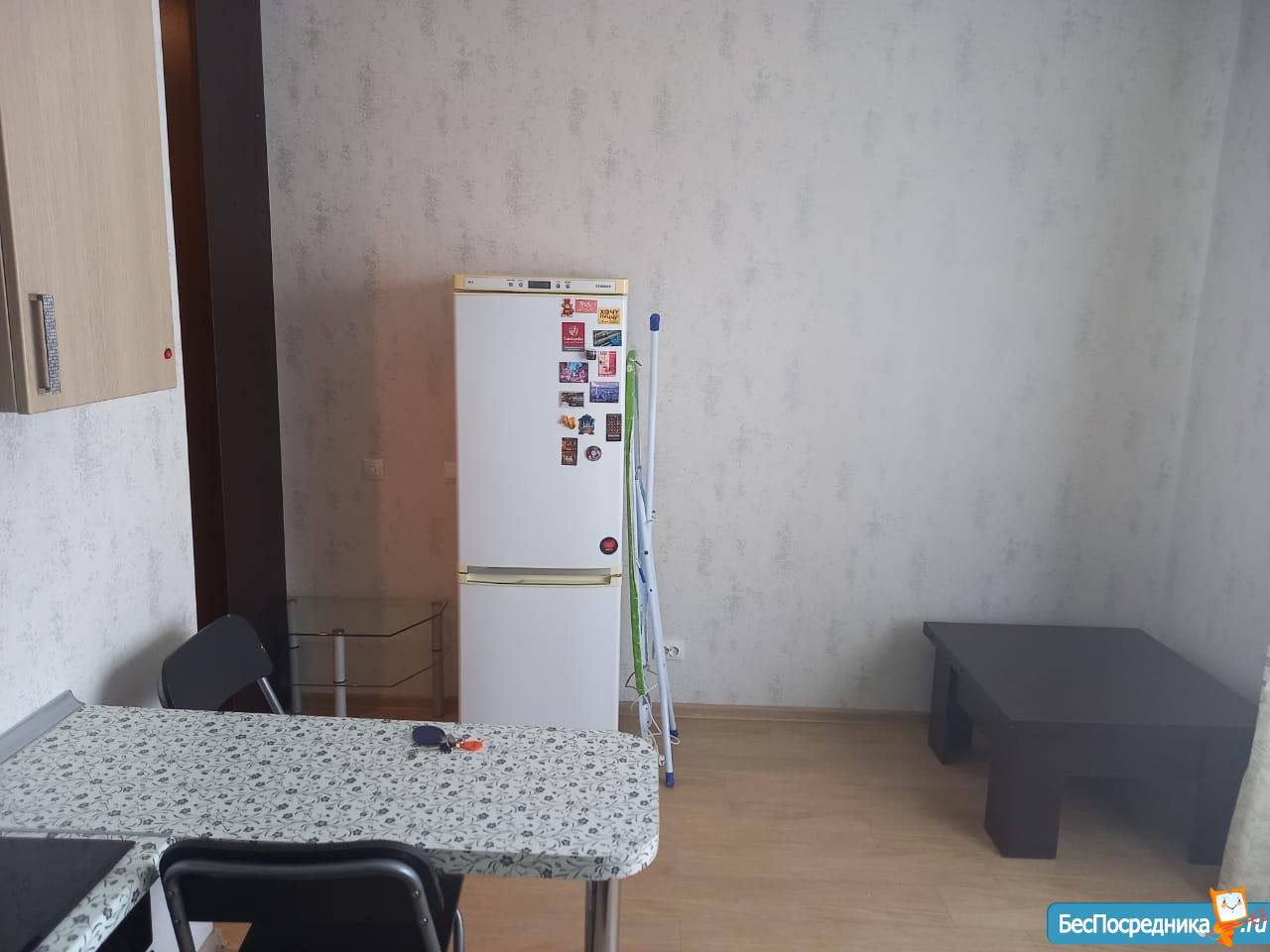 Есть кухня, холодильник, стиральная машина, огромный шкаф, диван.В подъезде 2 лифта, работают всегда. В 5 минутах ходъбы конечная автобусов. Рядом с домом магазин "Ярче".