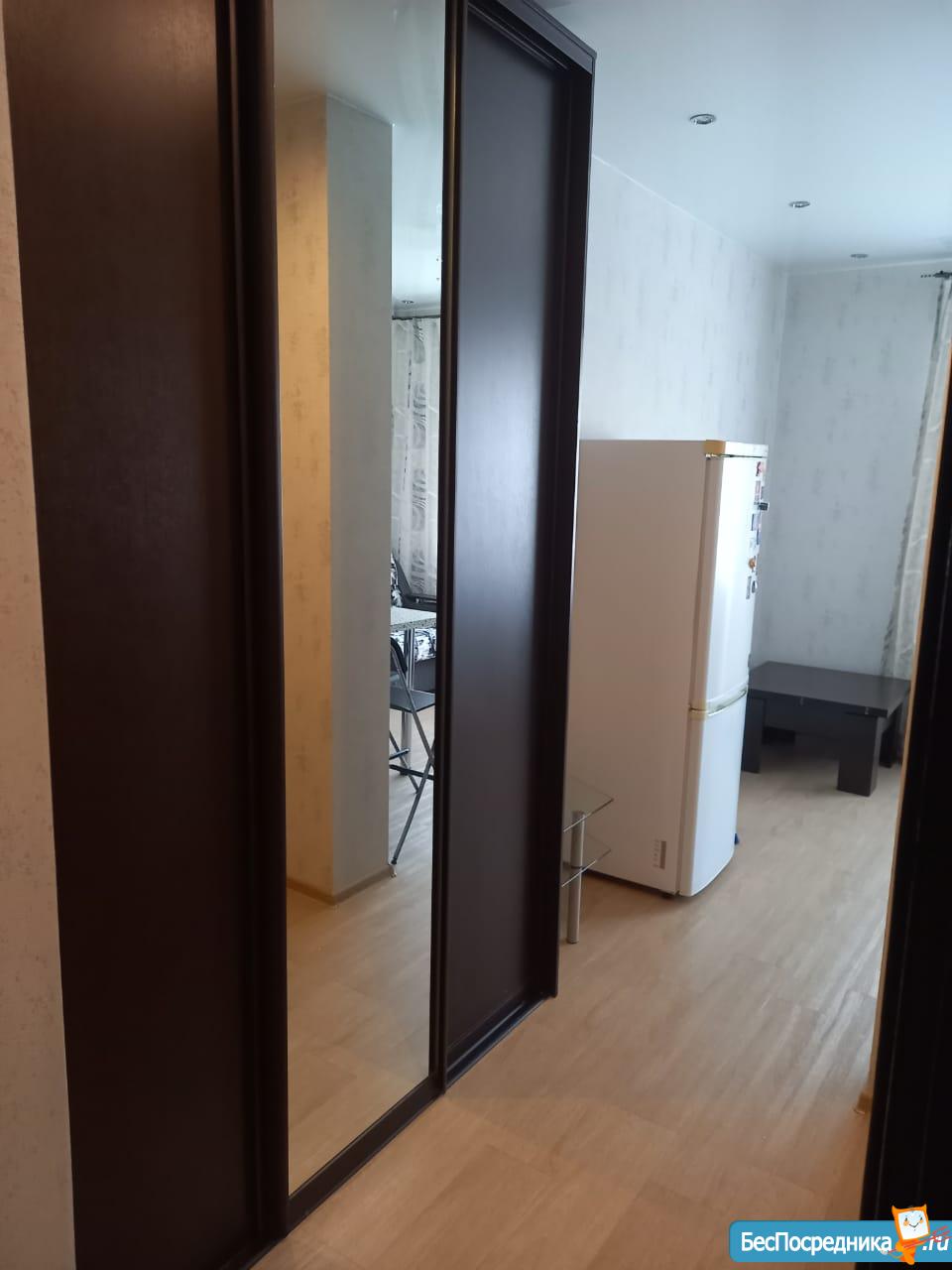 Сдам на длительный срок квартиру студию. Квартира с хорошим ремонтом, мебель и бытовая техника необходимая для проживания. Дополнительно оплачивается электроэнергия и водоснабжение по счетчикам. С животными залог 5 тыс. рублей.