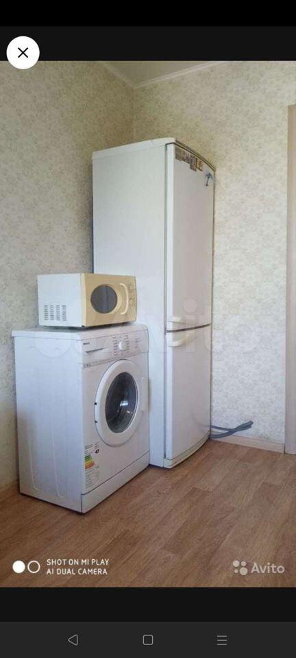 В комнате вся мебель, телевизор, холодильник, стиральная машина.
