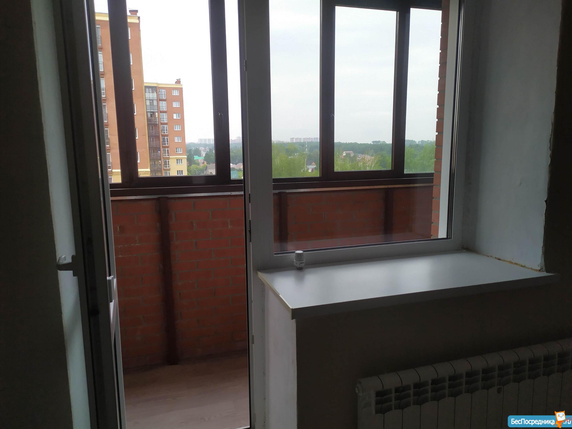 Балкон, застеклен. Французское окно в комнате.