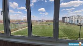 Лоджия застеклена.Окна выходят во двор.Квартира тепла и уютная.Солнечная сторона.