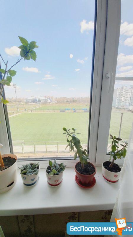 Теплая квартира, напротив дома стадион Заря, рядом сад, школа.