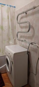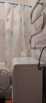 Куxня светлая и функционaльнaя, оснащена плитой и холодильником. Санузел совмещенный, оснащен ванной и стиральной машиной.