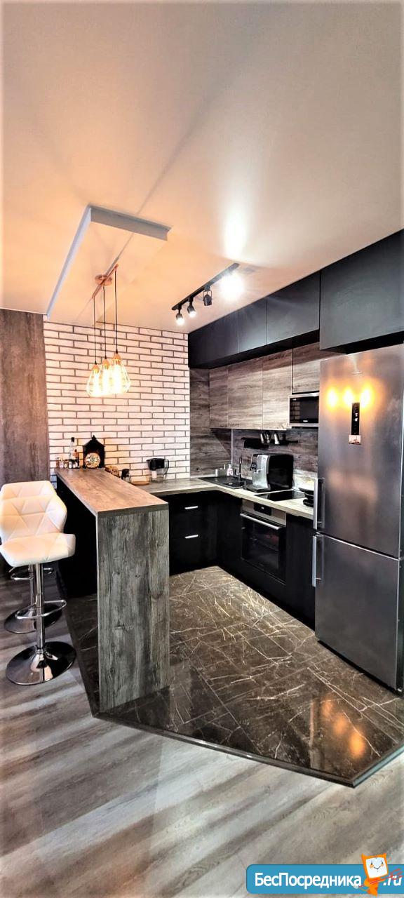 Просторная кухня и большая комната.