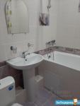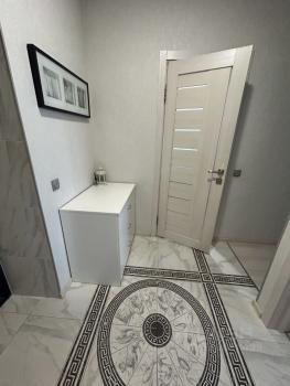 Ремонт делался для собственного проживания. Большой холодильник, раскладной стол и электроплита на кухне. В спальне совершенно новые кровать с матрасом и большой шкаф. В ванной так же новая стиральная машинка, раковина и зеркало с подсветкой.