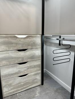 Большая гардеробная, двухспальная кровать , диван , душевая кабина,джакузи.