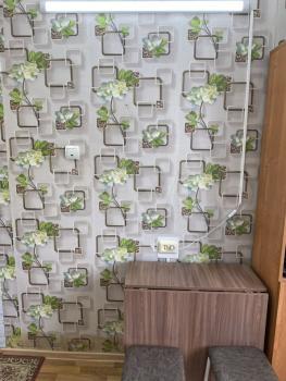 Чистая, теплая, уютная квартира. Из техники: холодильник, плита, wi-fi. В комнате диван и письменный стол. На кухне стандартный набор: стол, шкафчики, тумбы. В коридоре стеллаж. Вместительный шкафчик под все хозяйственные нужды в туалете.