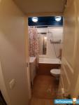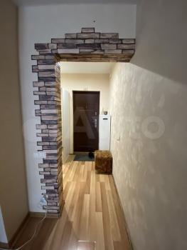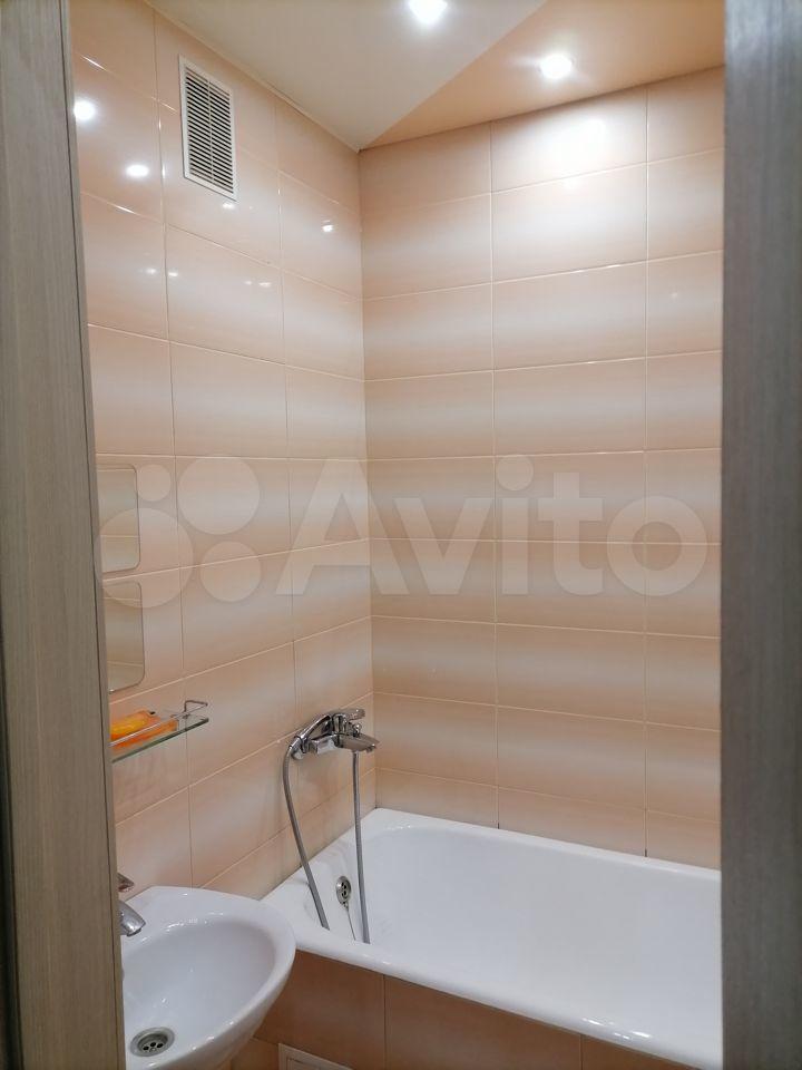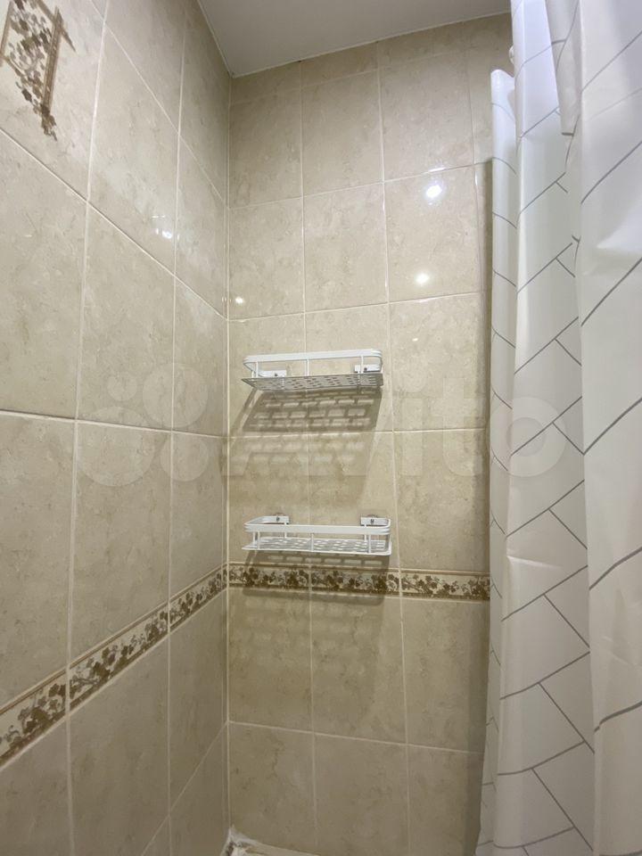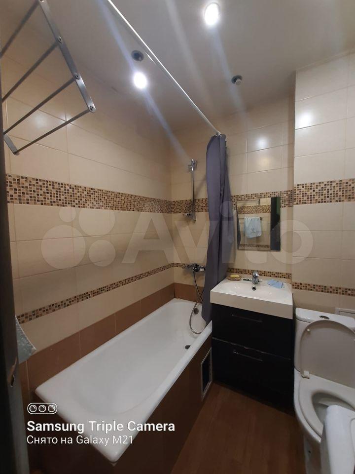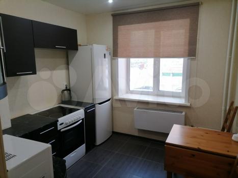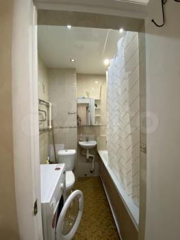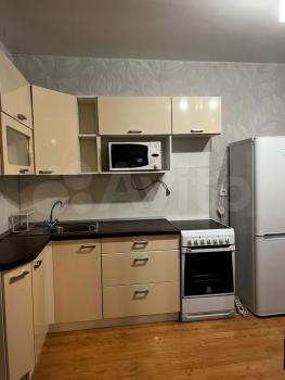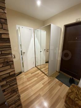 В квартире выполнен косметический ремонт. Просторная кухня оборудована необходимой техникой, включая холодильник и плиту. В комнате установлены шкафы для хранения вещей. Санузел совмещенный, оснащён ванной и стиральной машиной.