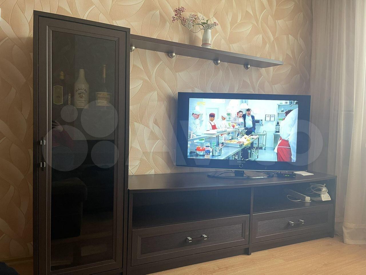 холодильник, плита, микроволновка, телевизор.