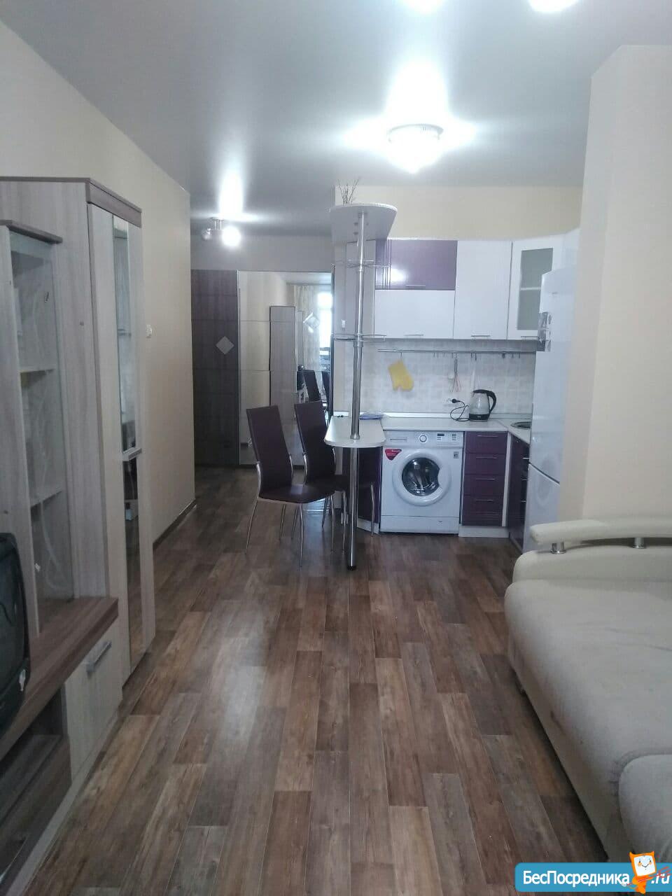 Сдается двух комнатная студия, на длительный срок. В квартире есть холодильник, стиральная машина, эл.плита, диван.Лично!